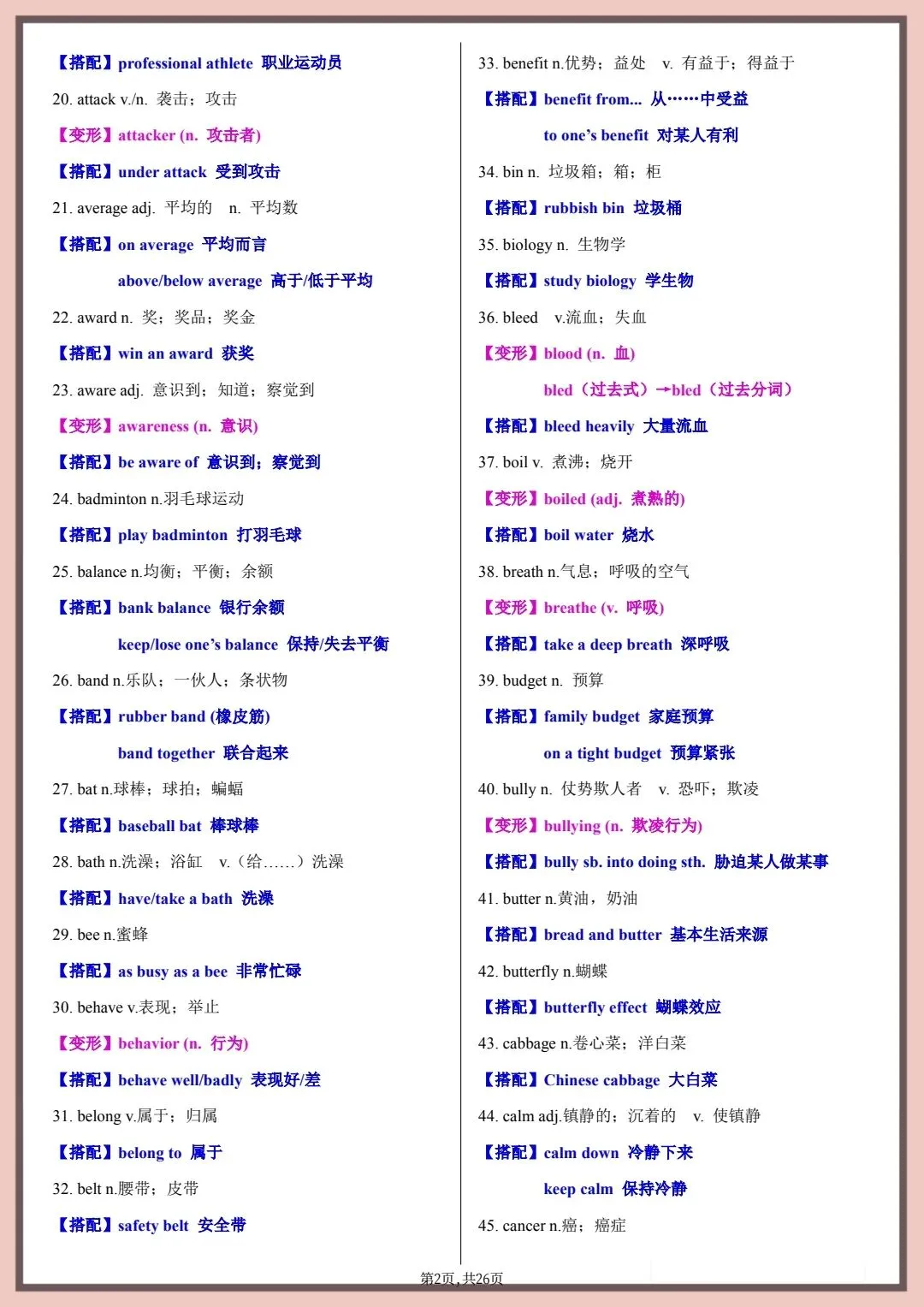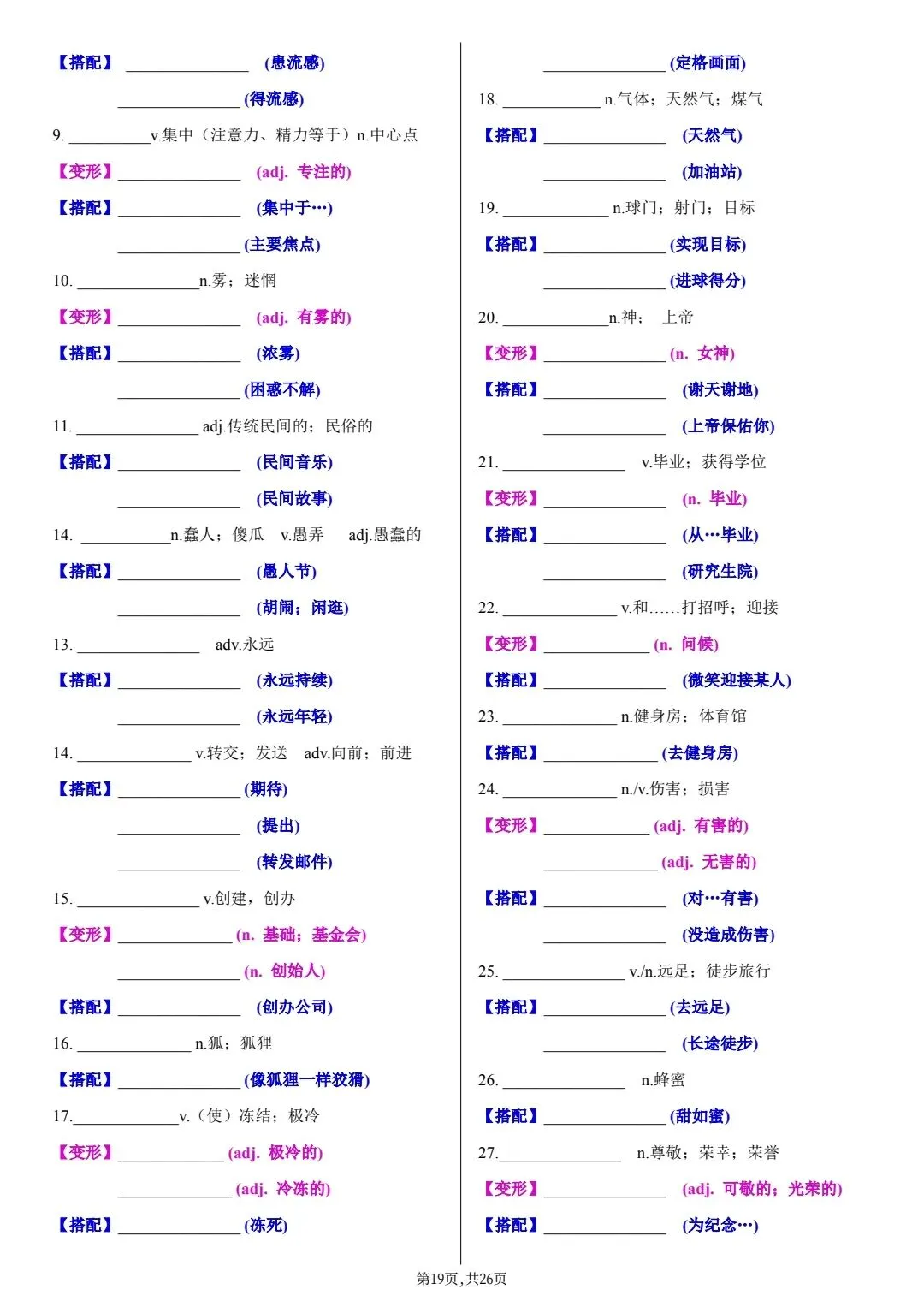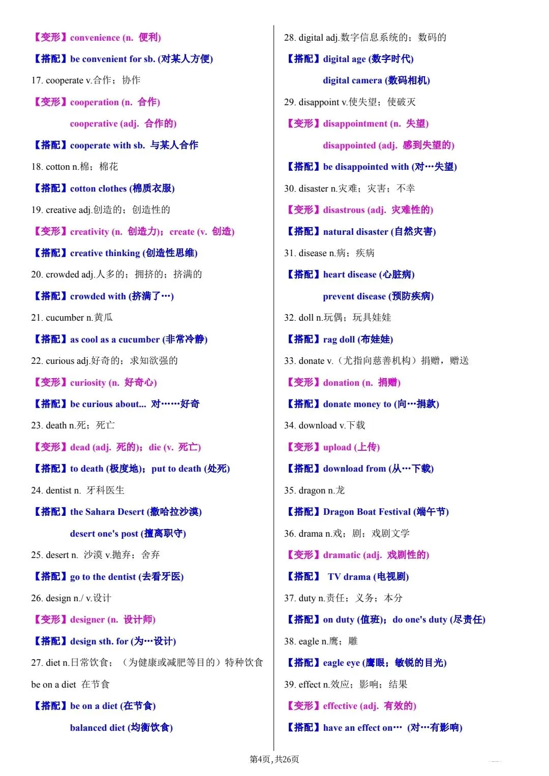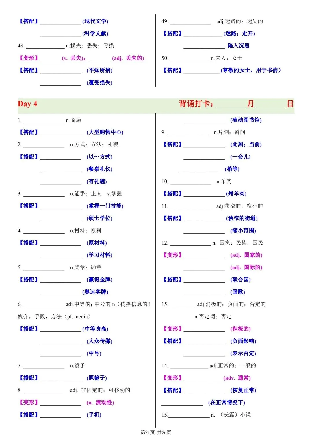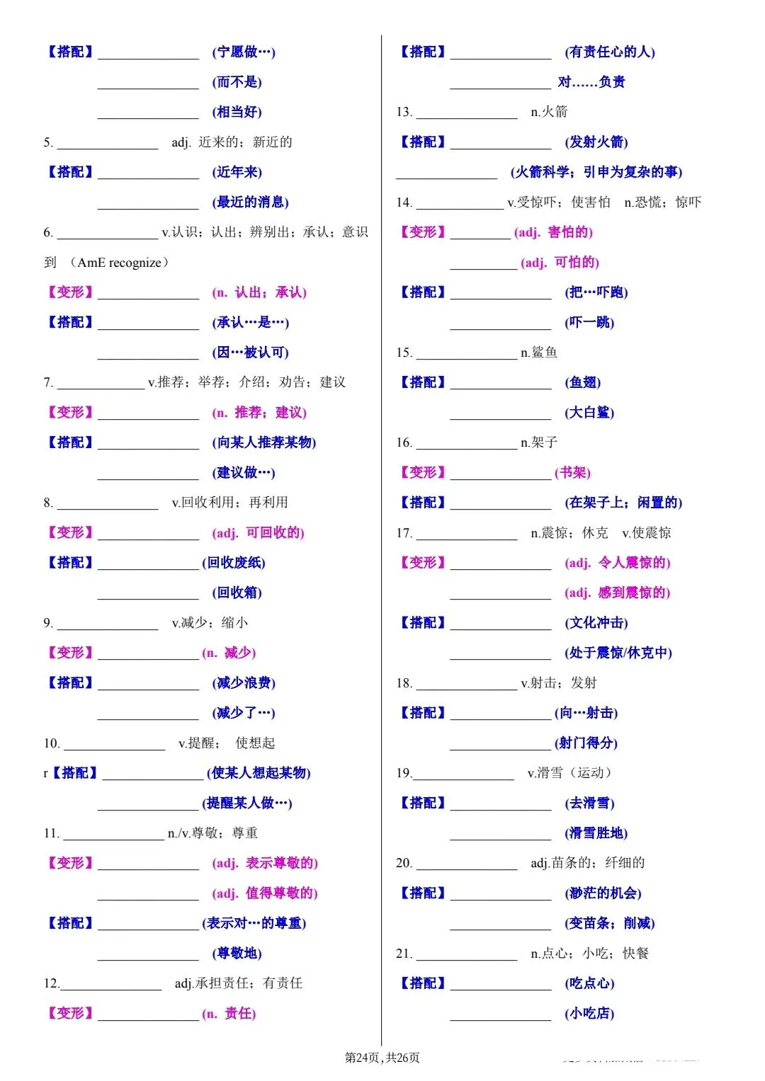 2026春中考英语5天•2025年修订版课表速记新增词汇,电子版可打印!