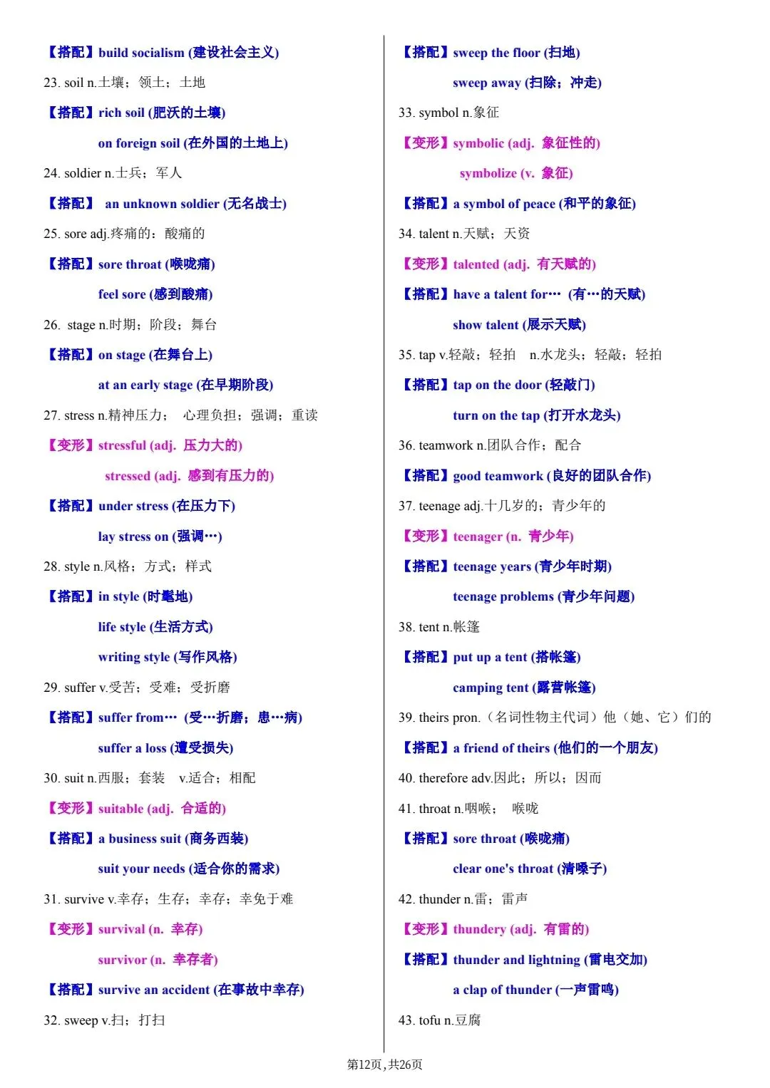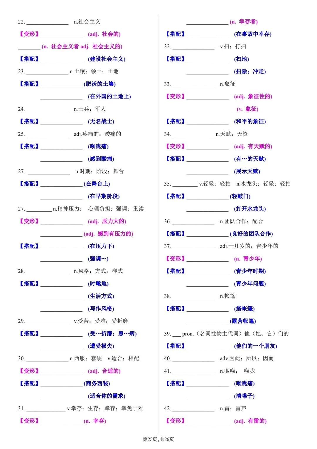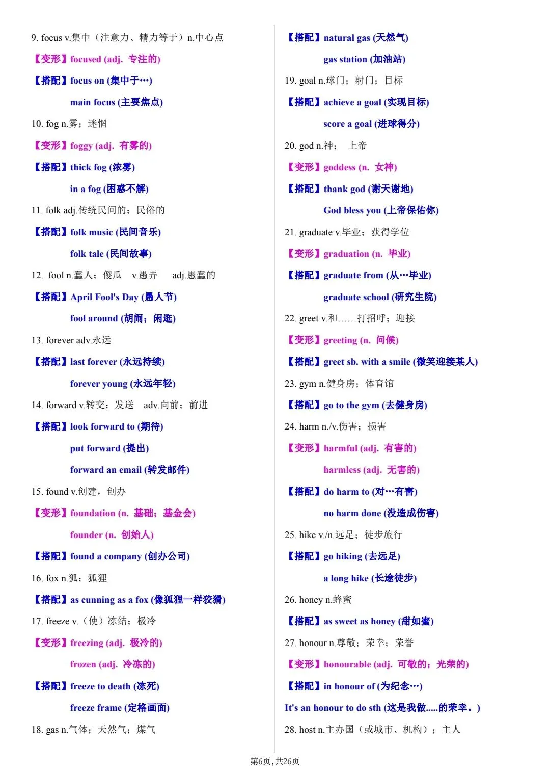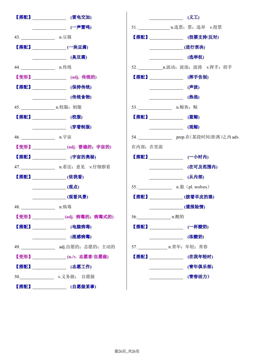 2026春中考英语5天•2025年修订版课表速记新增词汇,电子版可打印!