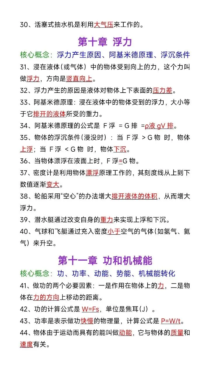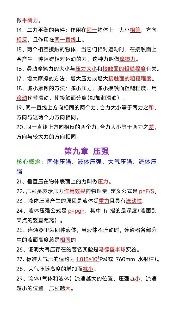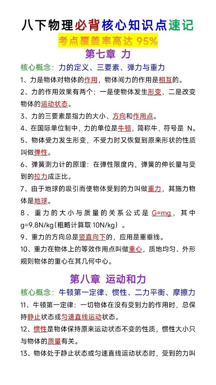 2026春期中备考关键期,八下物理核心知识点终于整理好!结合最新教材改版,精准提炼期中必考内容,预习+冲刺双适配,家长直接打印给孩子用,考试直接套答案拿满分!