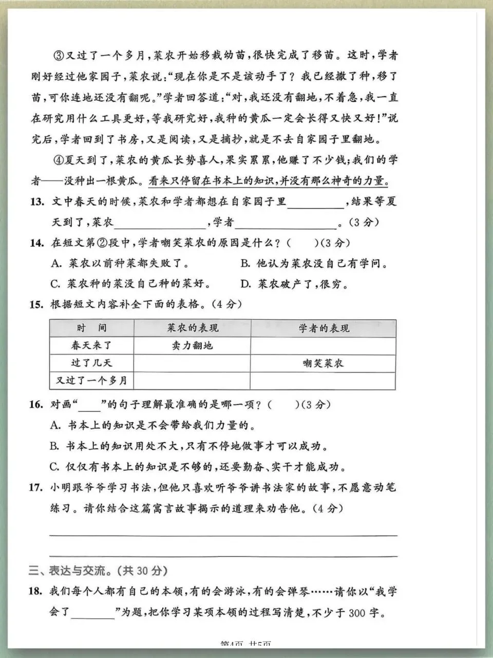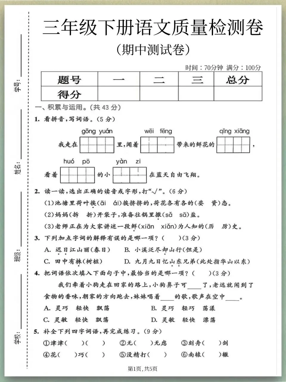 三年级下册语文期中质量检测卷已备好!题型全面,从字词基础到阅读理解再到写作,答案完整,方便孩子对照,助力期中备考高效冲刺。
