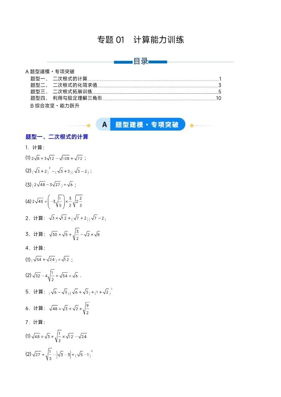 2026春期中备考关键期,八下数学期中复习计算题能力训练重磅整理!紧扣最新教材,聚焦期中必考计算题型,预习+冲刺双适配,家长直接打印给孩子练,考试计算不丢分,轻松拿满分!
