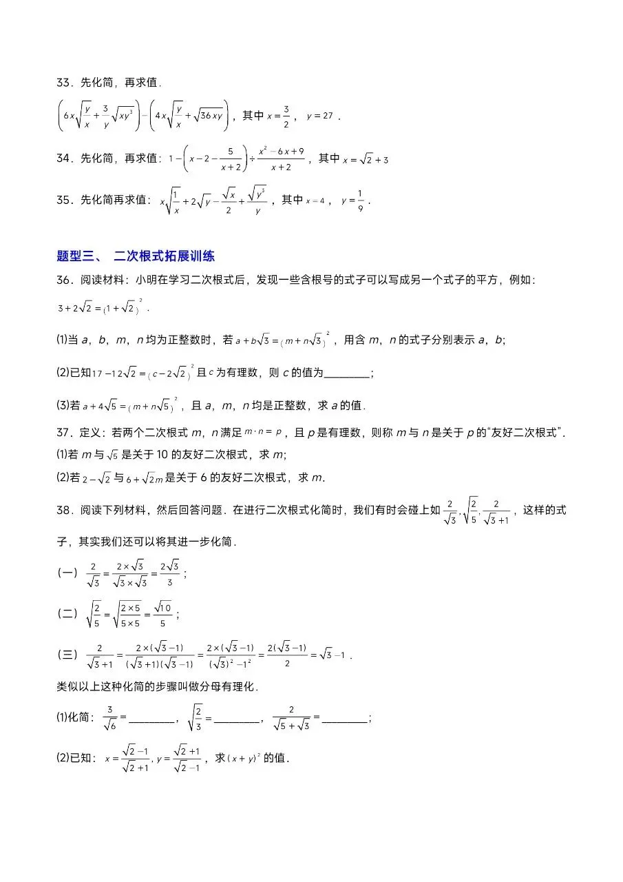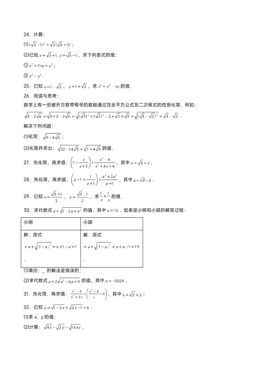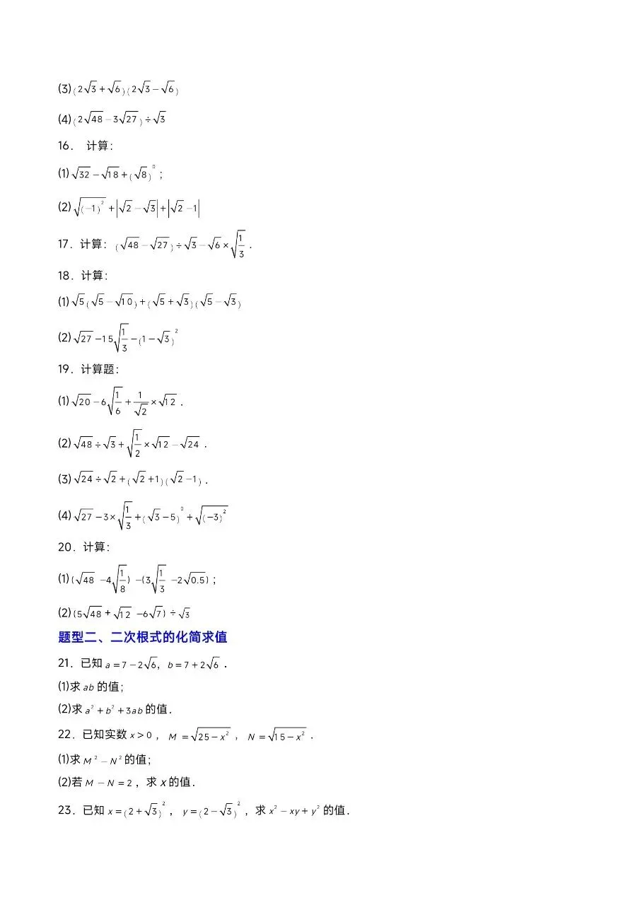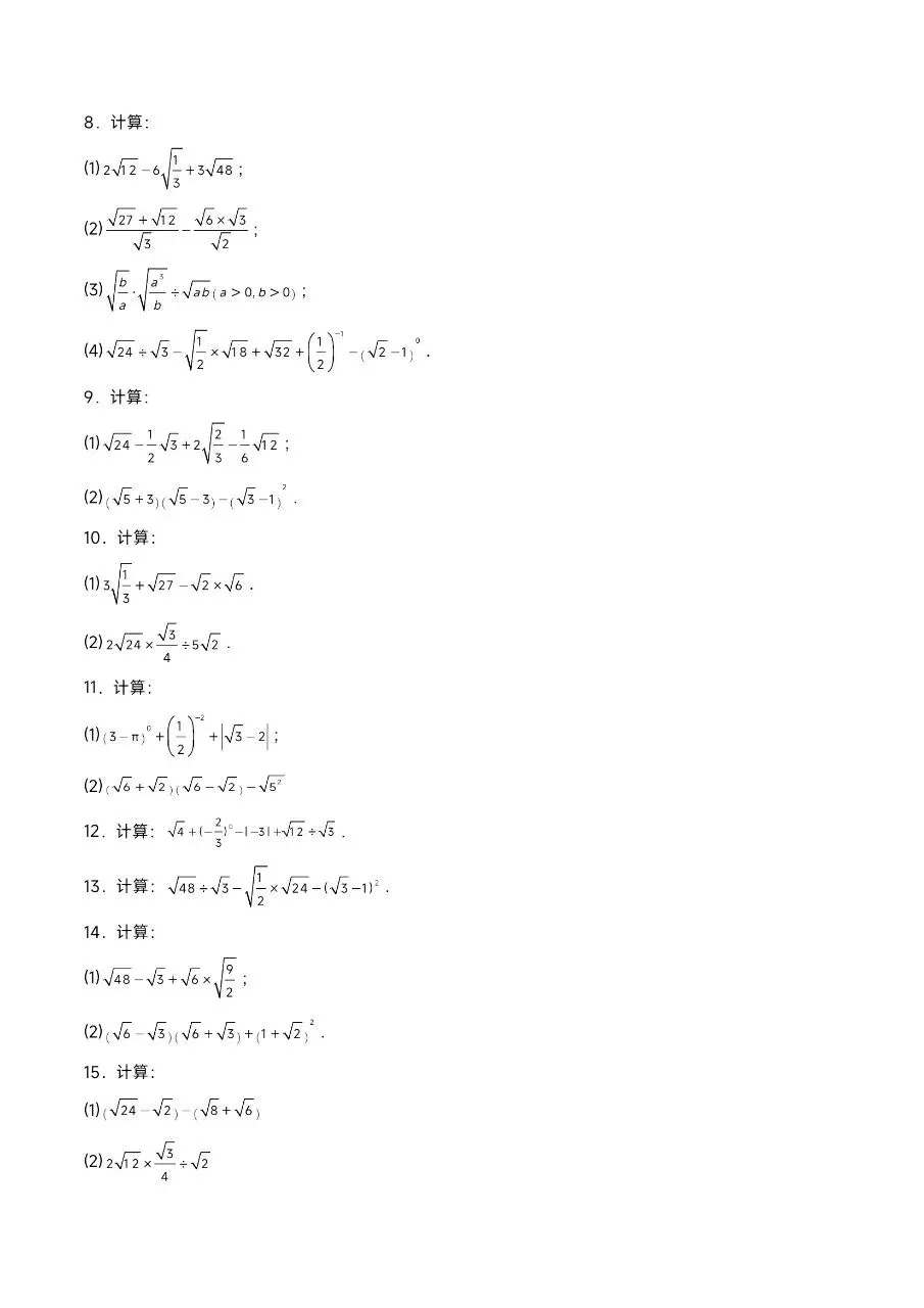 2026年最新版八年级下册数学期中复习计算题能力训练,完整电子版可打印,学霸学习好帮手,建议家长打印,学霸人手一份!