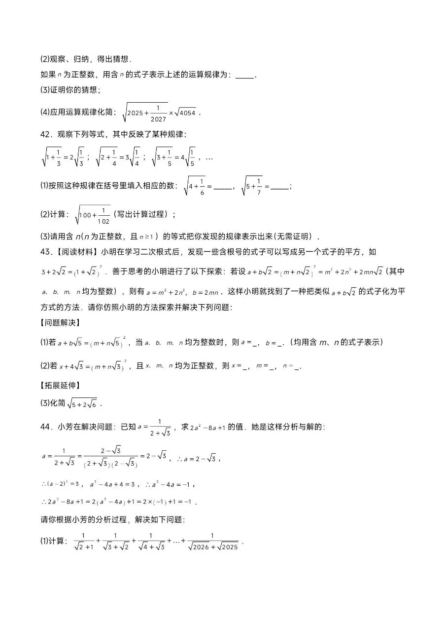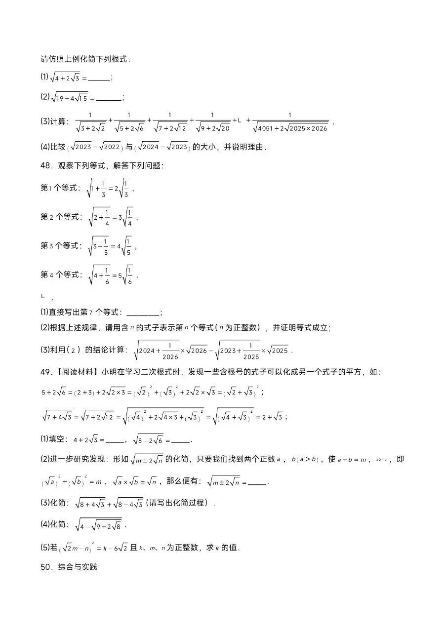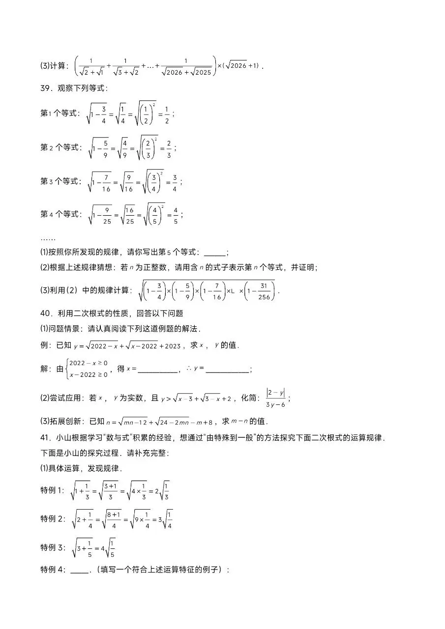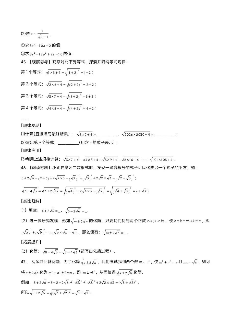 2026年最新版八年级下册数学期中复习计算题能力训练,完整电子版可打印,学霸学习好帮手,建议家长打印,学霸人手一份!