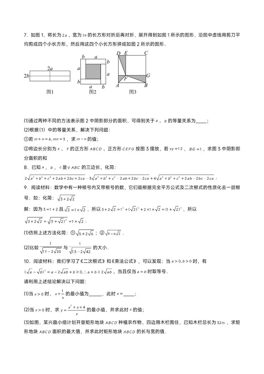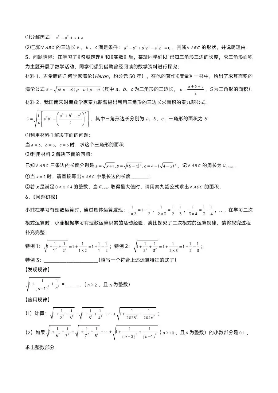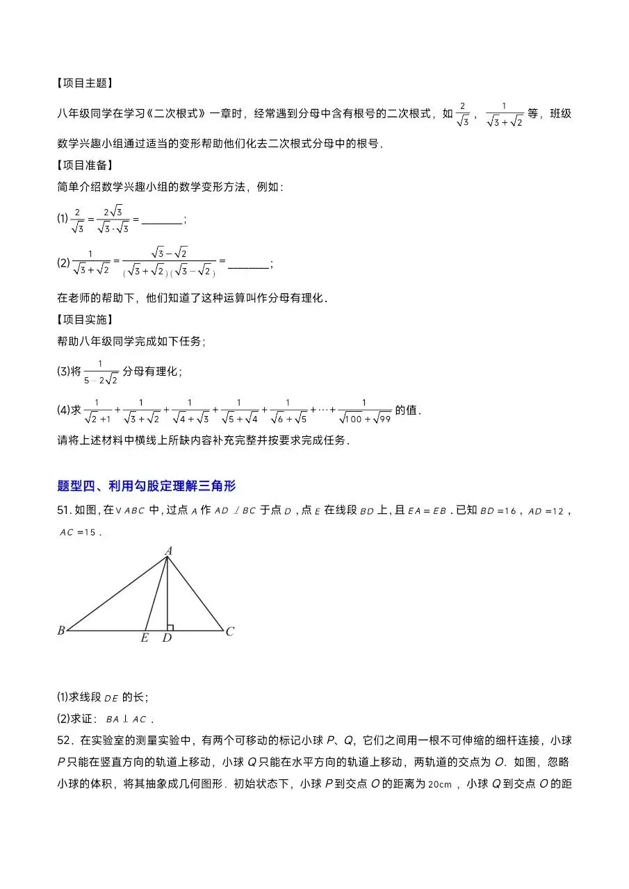 1. 核心题型:二次根式运算、分式运算、勾股定理计算、平行四边形相关计算,期中高频全囊括