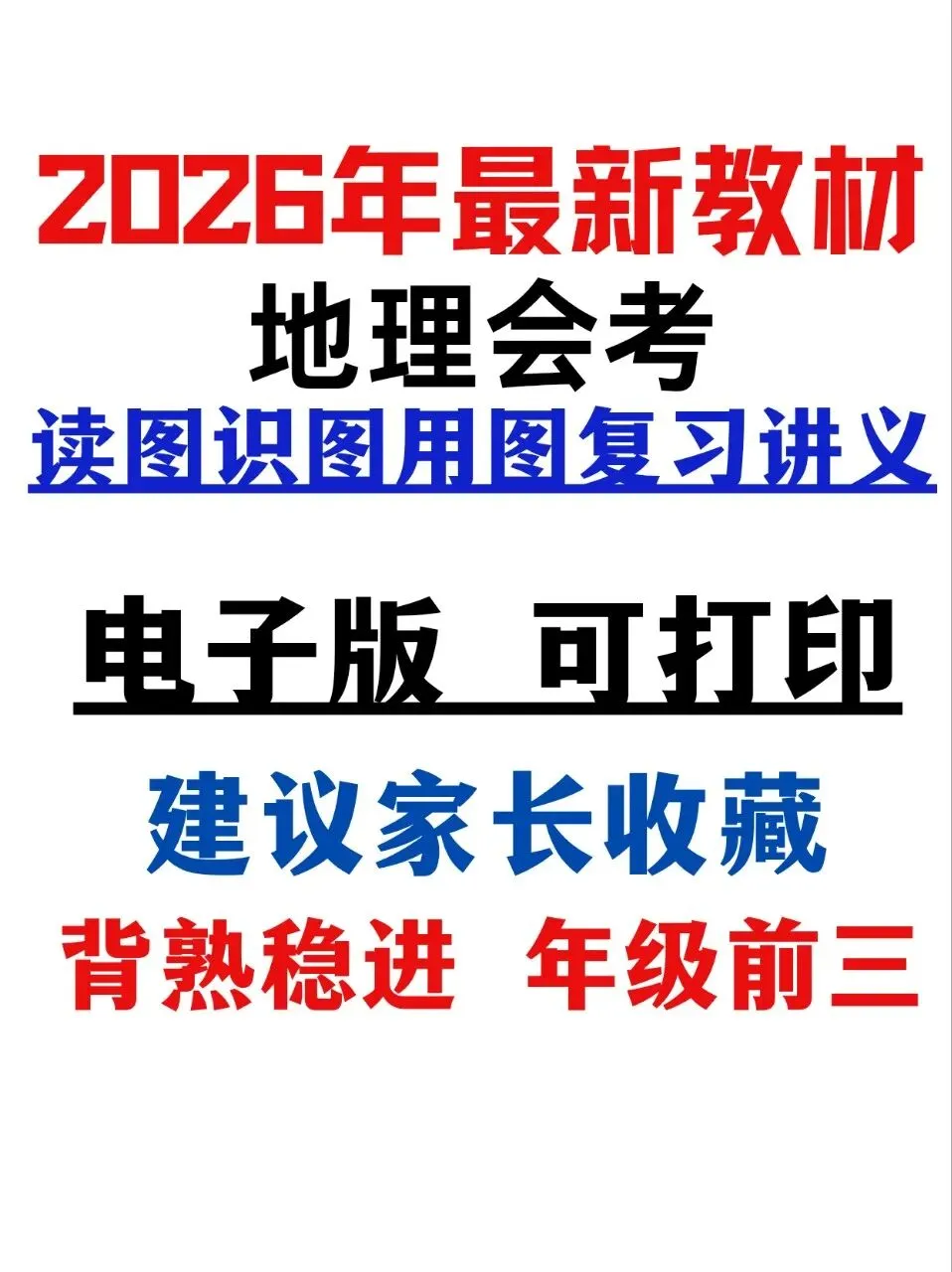 2026地理会考冲刺关键期,地理会考读图识图用图复习讲义重磅整理!紧扣最新教材,专攻会考必考读图题型,预习+冲刺双适配,家长直接打印给孩子用,考试直接看图得分,轻松拿满分!