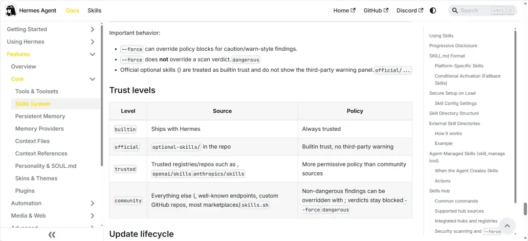 Hub安装的Skill会经过Skills Guard安全扫描,但Agent自己创建的Skill,没有任何安全审查。