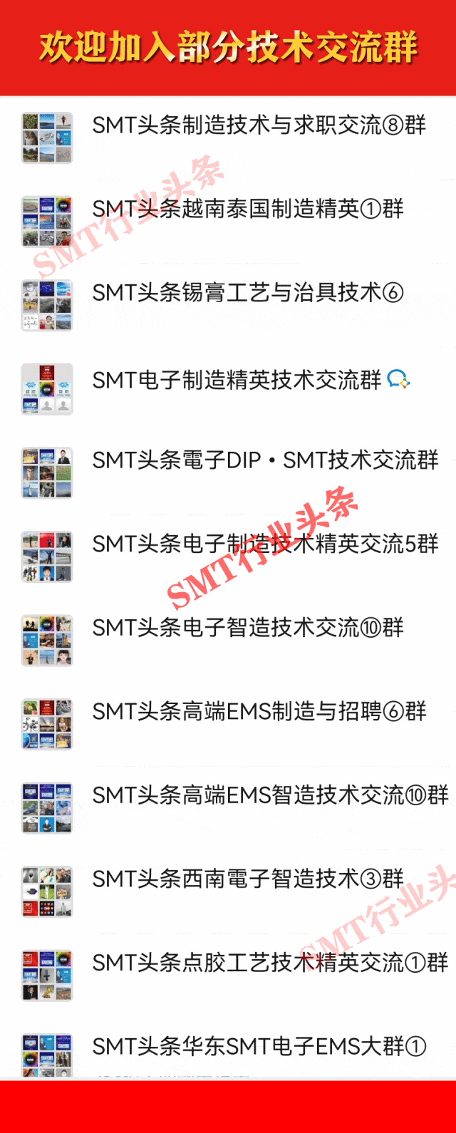 SMT头条旗下各大群以SMT技术、观点碰撞交流学习、分享互助、商业信息分享合作为宗旨,大家共同创建一个高质量的DIP插件加工技术工艺交流平台❗️ 进群私聊群管理员,邀请您进群交流!