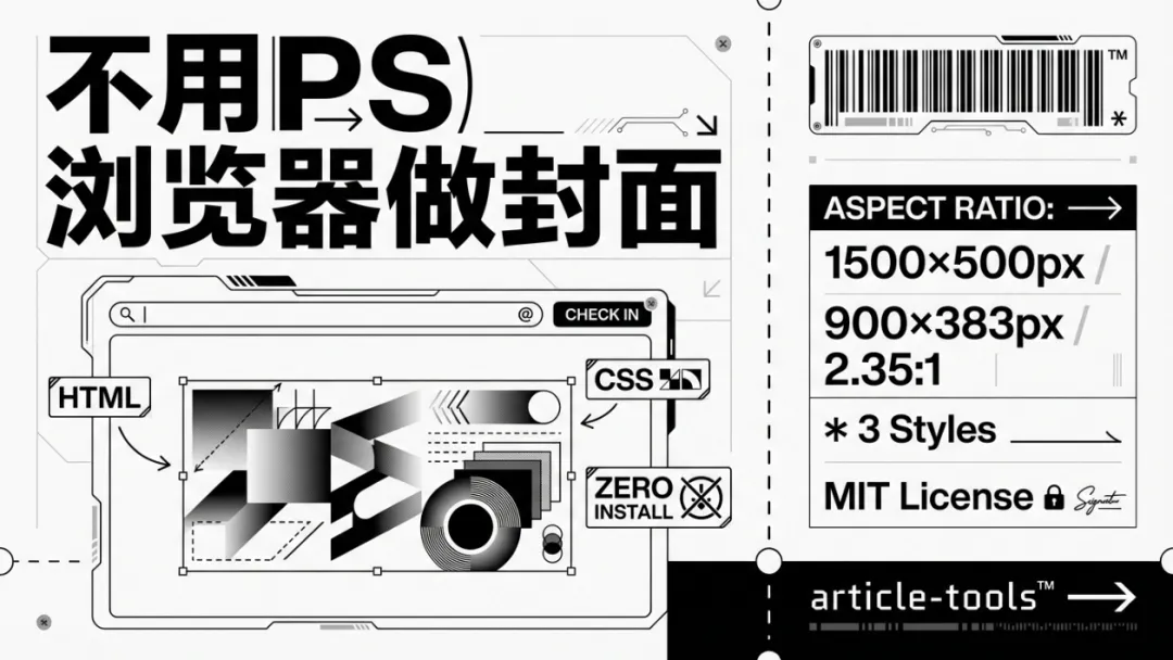article-tools,GitHub上刚开源,MIT 协议。三个工具——排版、封面生成、二维码。这篇只聊封面生成器(cover.html),另外两个以后单独写。