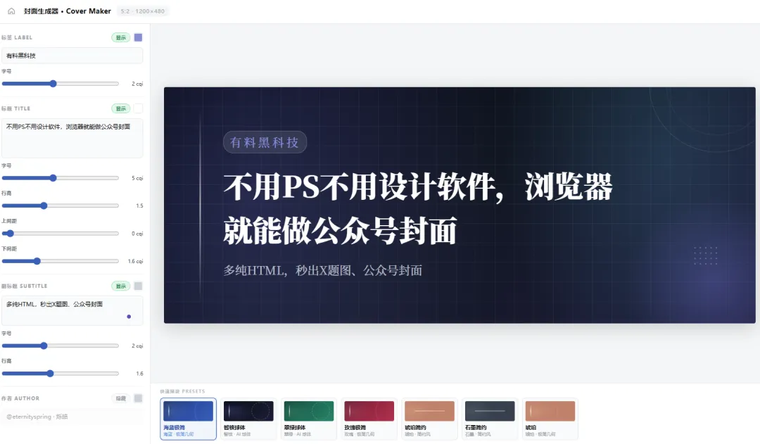 一个开发者把他做公众号封面和 X 题图的工具开源了。
