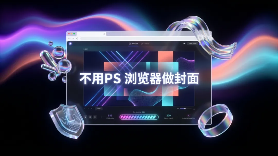 公众号封面(2.35:1)我试了 AI 球体风格配深色背景。说实话这张我犹豫要不要放进来。球体的 CSS 渲染在 Chrome 上看着还行,但换到 Edge 上光影效果差了一点。如果你对封面要求比较高,这个可能还不够。