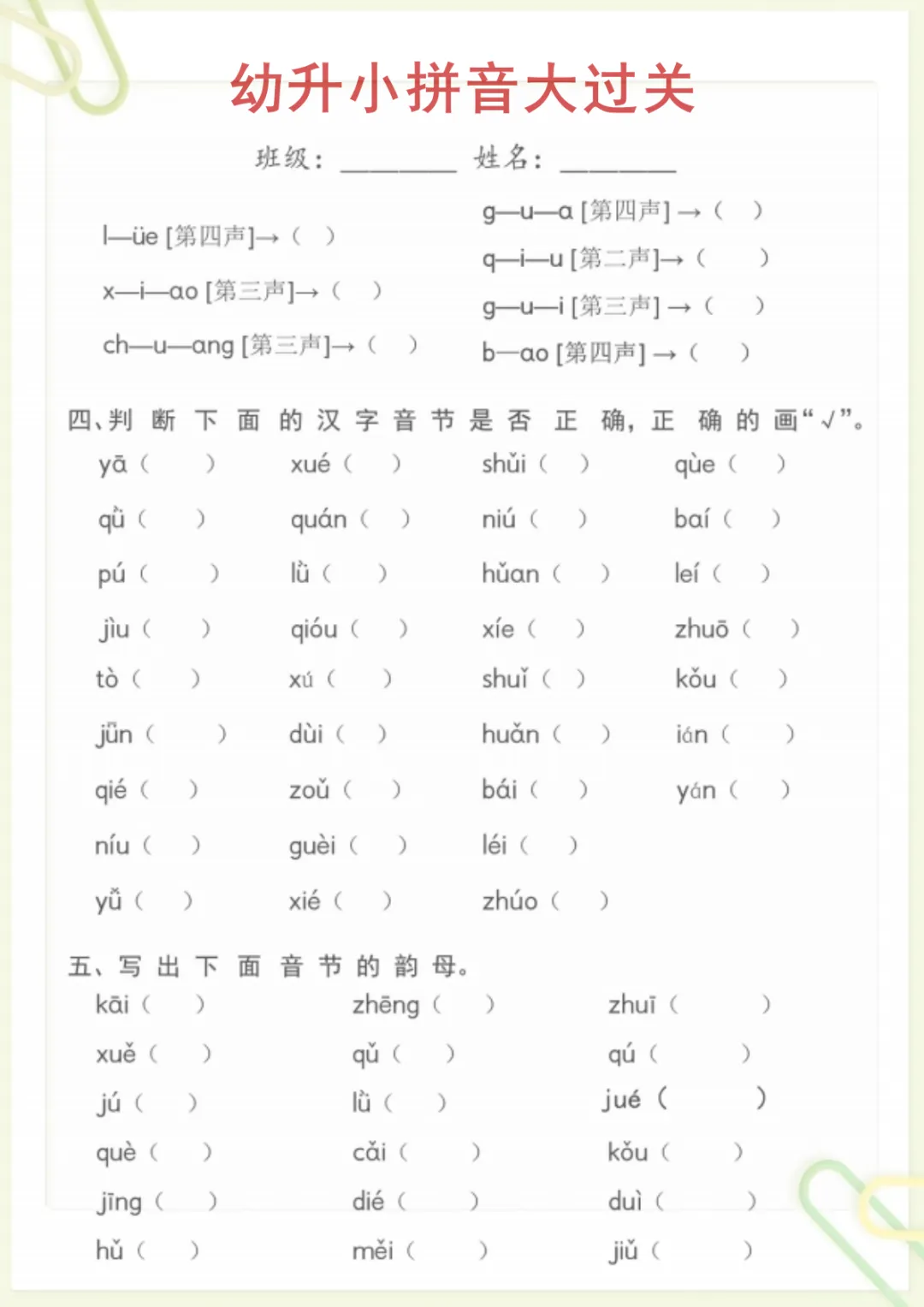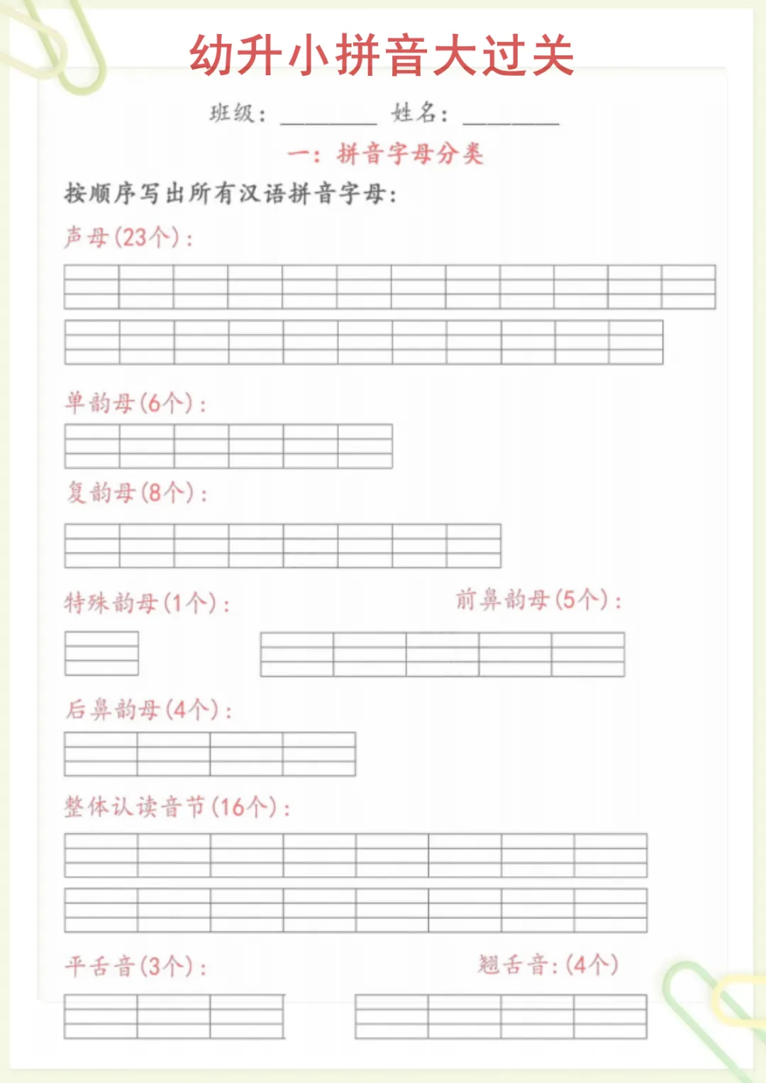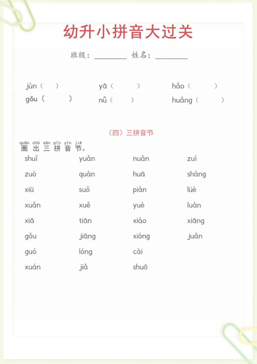 幼升小语文【拼音大过关】,电子版可打印