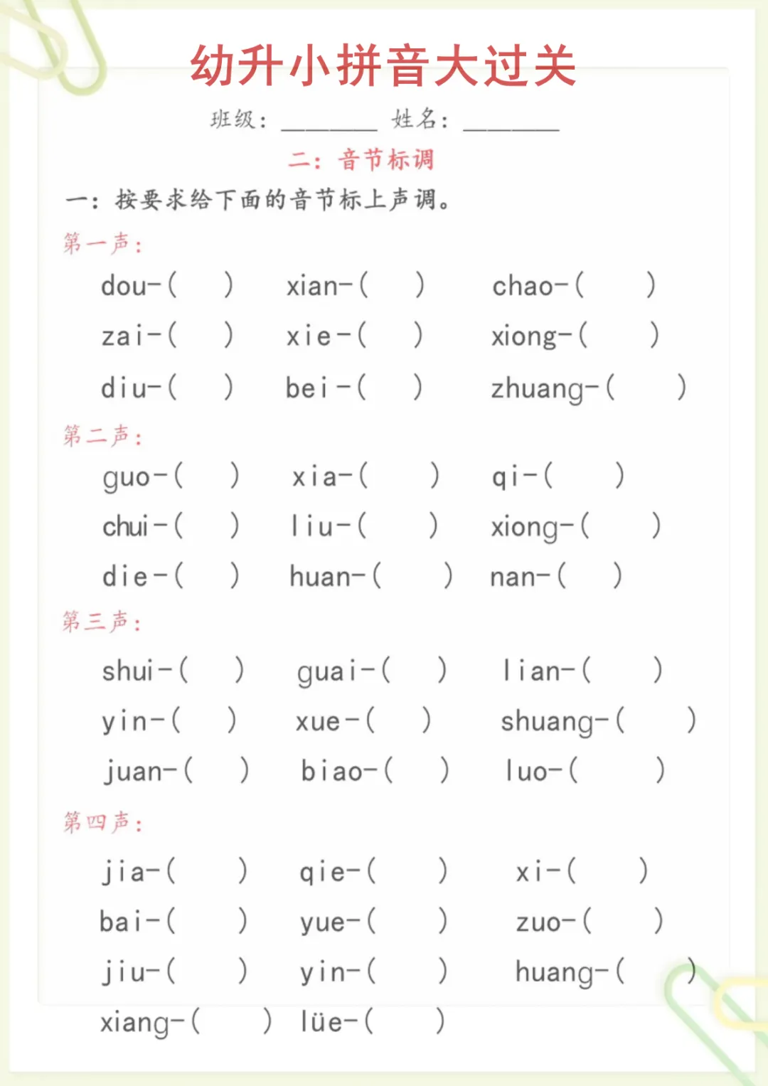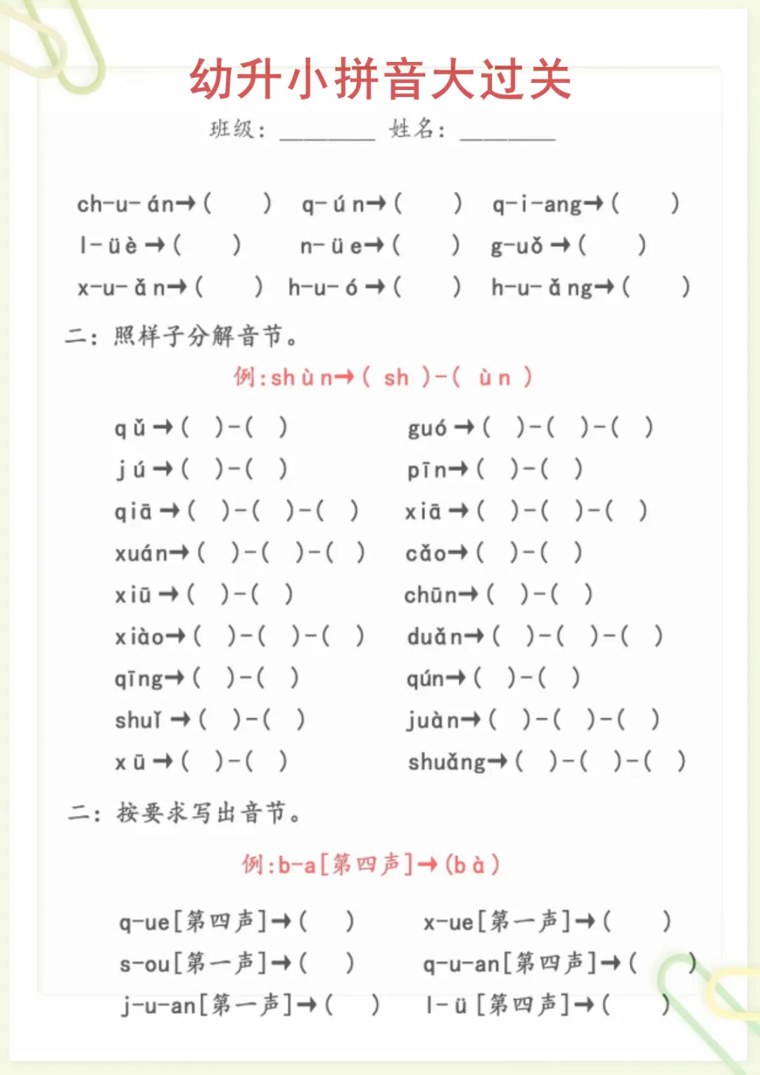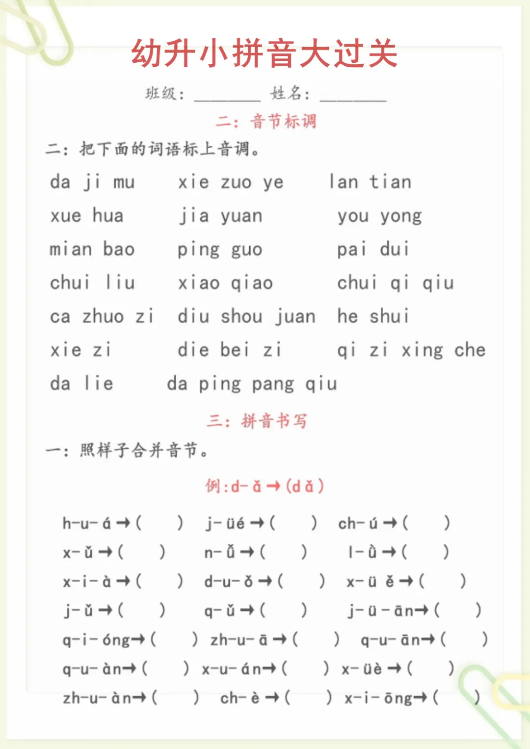 幼升小语文【拼音大过关】,电子版可打印