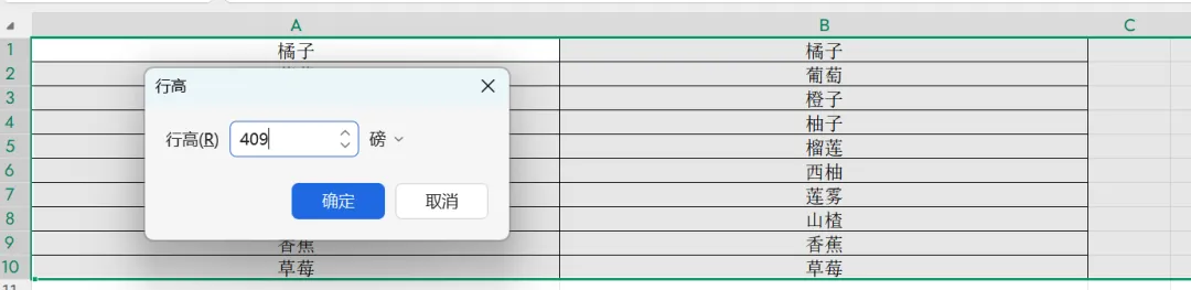 选中所有姓名行,设置行高为409