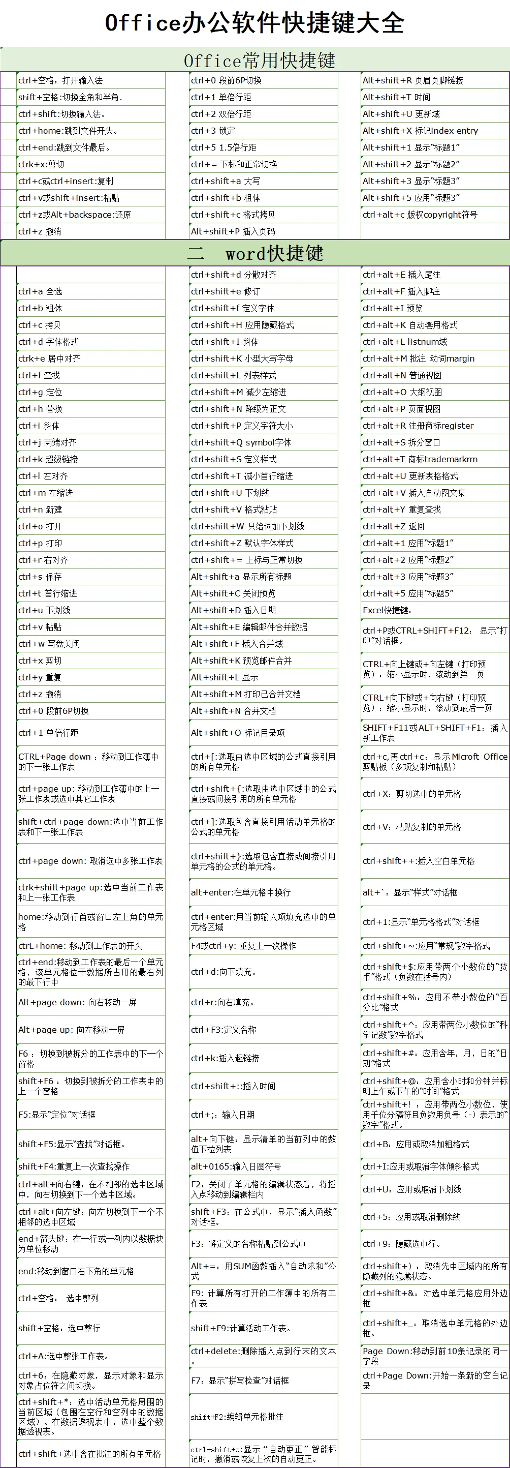 office办公软件快捷键大全