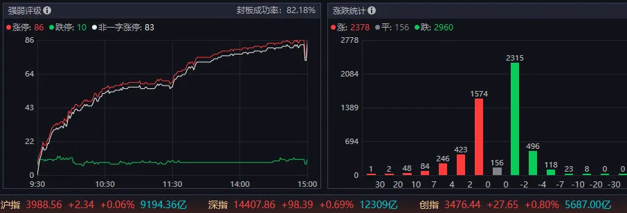 涨跌家数差不多各一半,成交量稍微有点缩,但涨停的有86家,指数全红。最猛的是创业板,又创新高了。光模块更不用说了,照样坚挺,还在刷新历史新高。