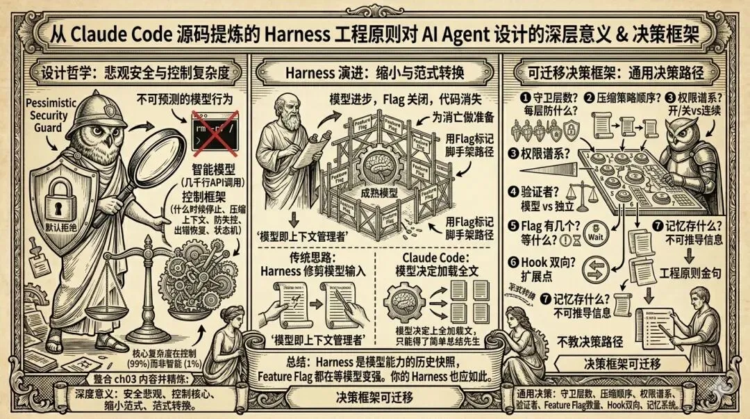 这 51 万行代码中最有价值的东西,不是某个具体的算法或技巧,而是 Anthropic 工程师在面对”模型能做什么、不能做什么”这个不确定性时,做出的每一个具体决策。这些决策藏在源码的每一个默认值、每一个 Flag、每一个分界线里。