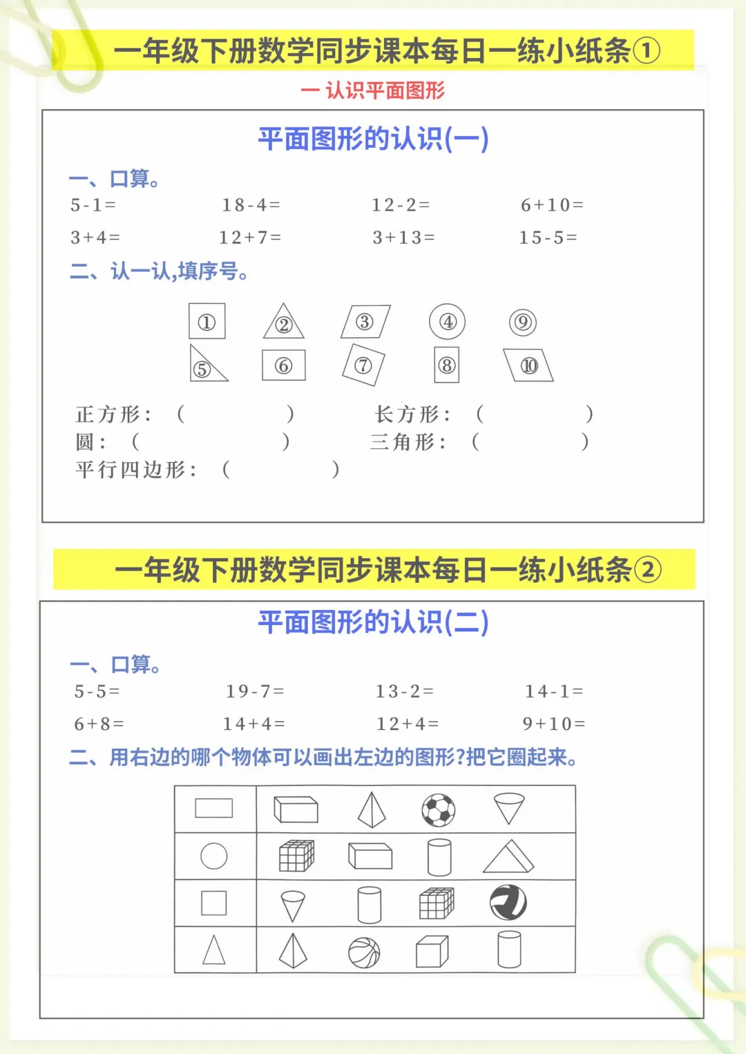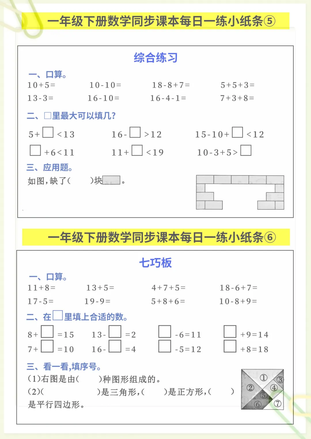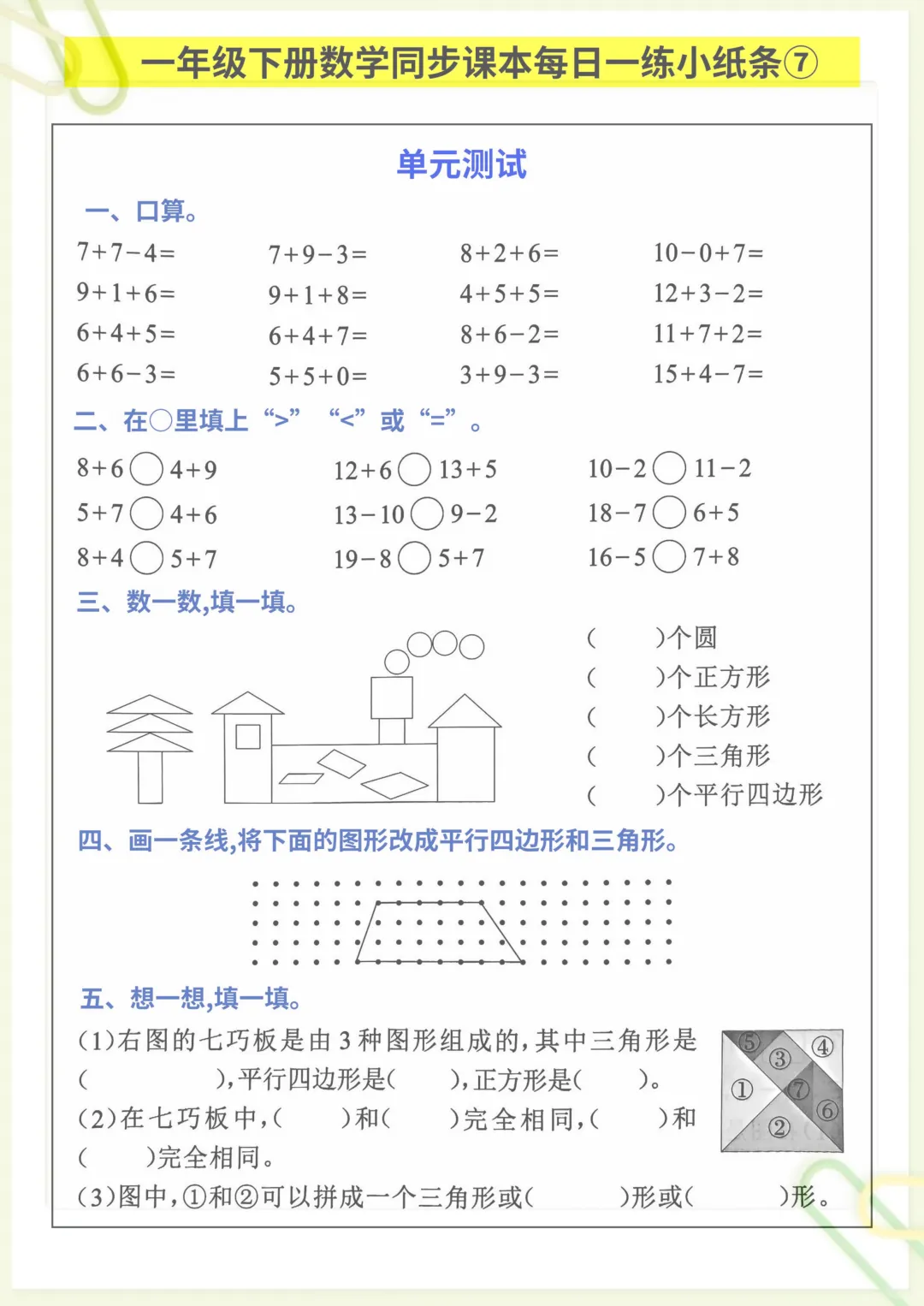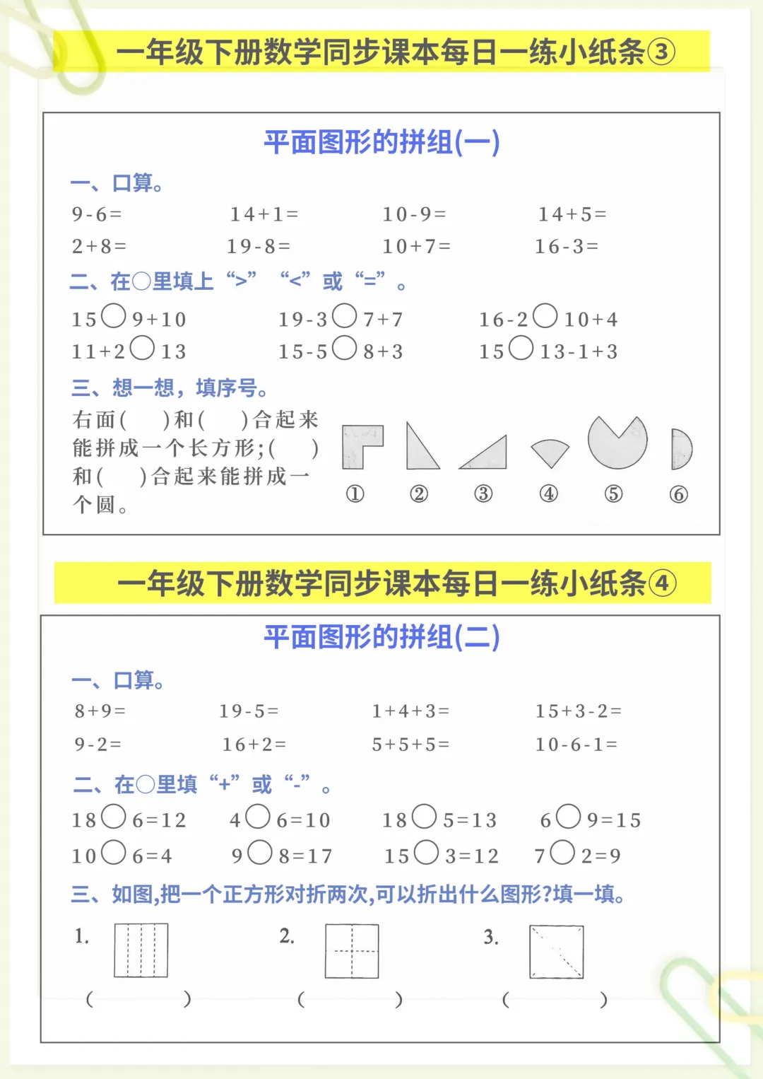 一年级下册同步每日一练小纸条,共48页,电子版可下载可打印,这份资料紧扣一年级下册同步学习进度整理,涵盖多个核心知识点与专项训练内容,适合孩子课后每天练一练、及时巩固当日所学,帮助家长更省心地进行日常复习与查漏补缺。需要的家长可以及时下载打印出来,让孩子循序渐进练起来。