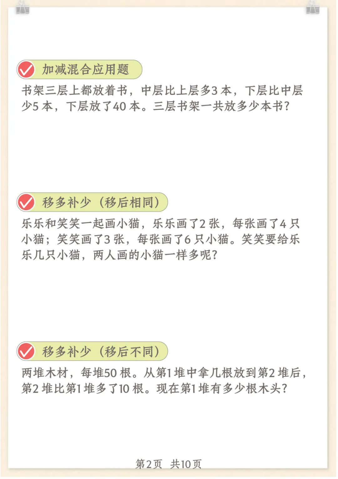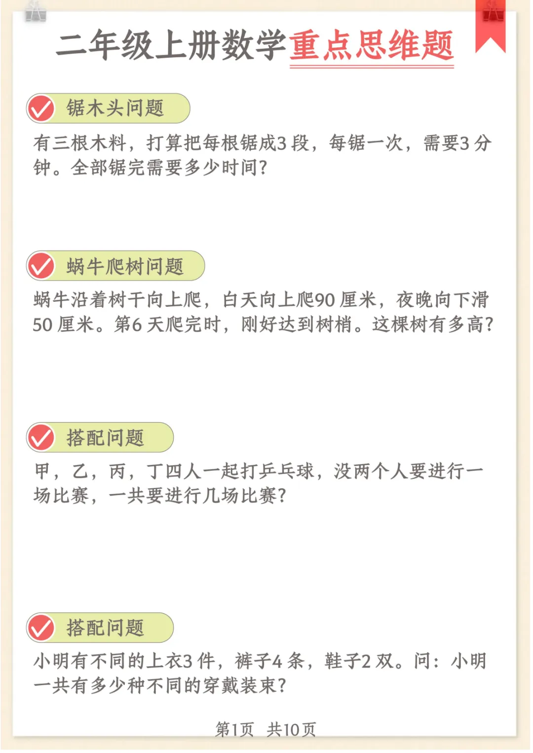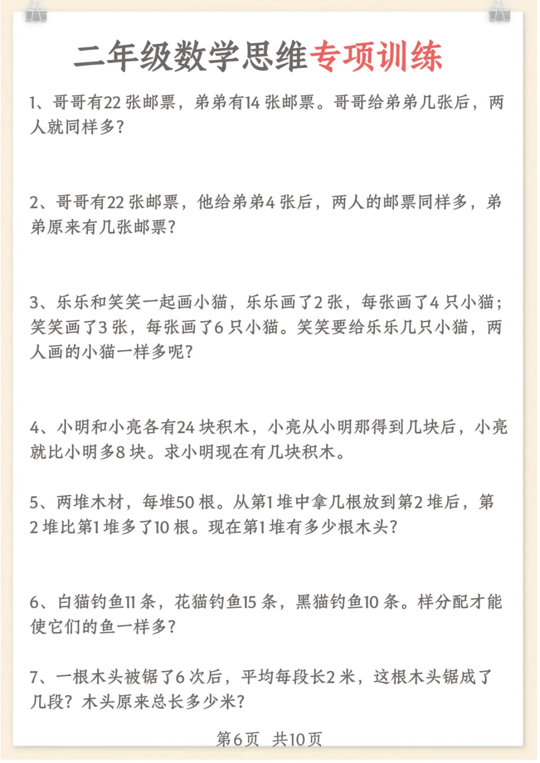二年级上数学重点思维题+数学思维,共15页,电子版可下载可打印,这份资料围绕二年级上册数学学习内容整理了重点思维题与数学思维训练,涵盖多个核心知识点与专项训练内容,帮助孩子在日常练习中提升分析能力、理解能力和解题思路,更好地巩固课堂所学、强化数学基础。需要的家长可以及时保存打印出来,让孩子练一练。