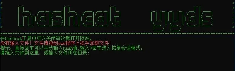 下面我给大家演示下,运行时需要退出安全卫生类的软件,打开hashcat,来到主页面,你看,界面很简单,这里提示你把需要解密的文件拖进窗口就可以,