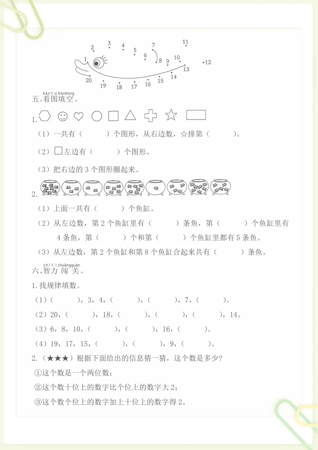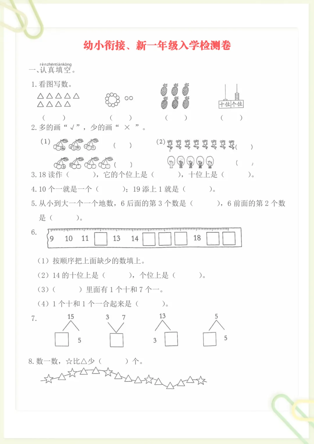 幼升小数学新一年级入学测试卷,电子版可打印