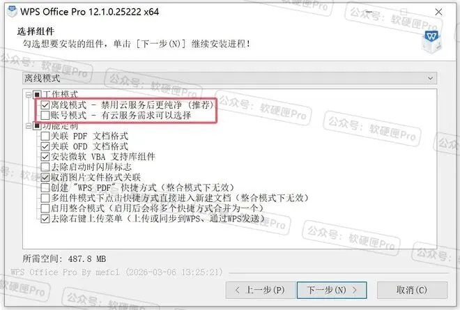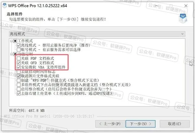 第三步:功能定制(关键步骤)这一步决定了你的使用体验,可以根据自己的需求勾选是否关联PDF以及OFD格式的文件,是否安装微软VBA支持库组件等。