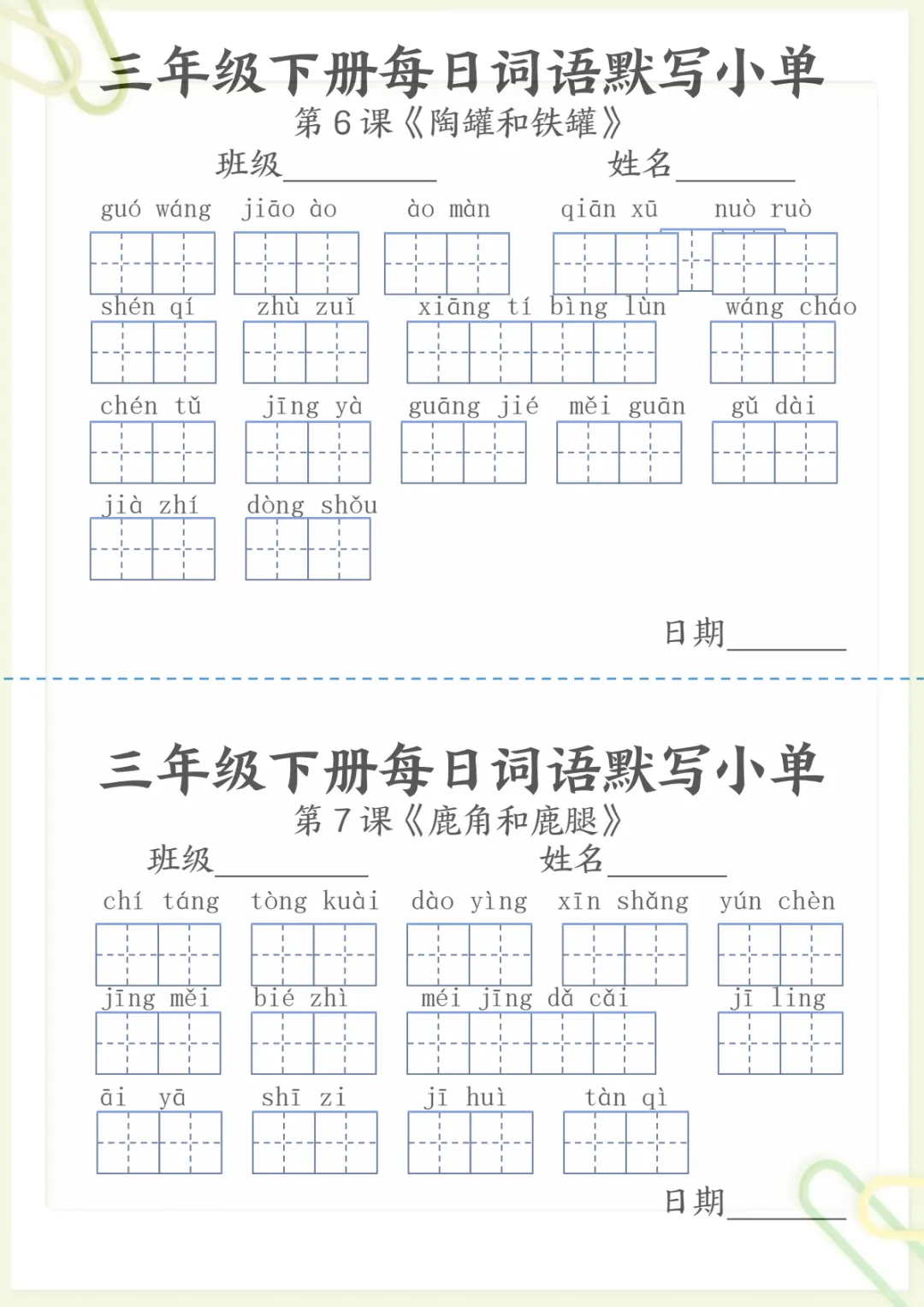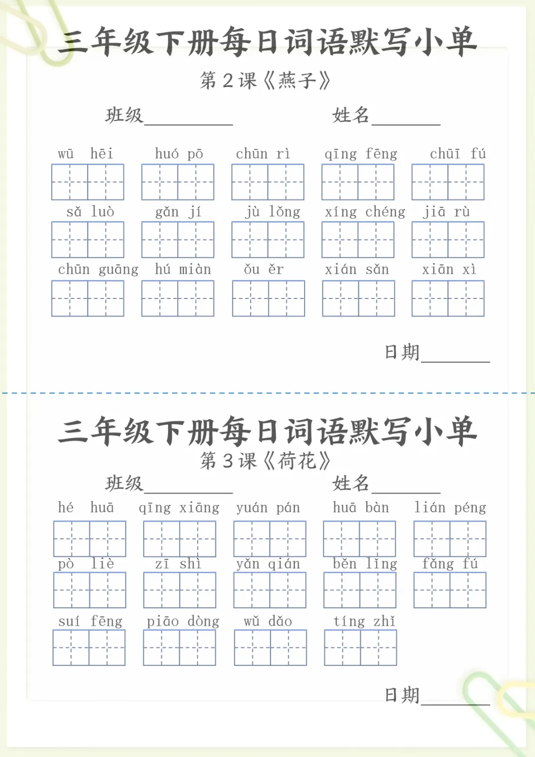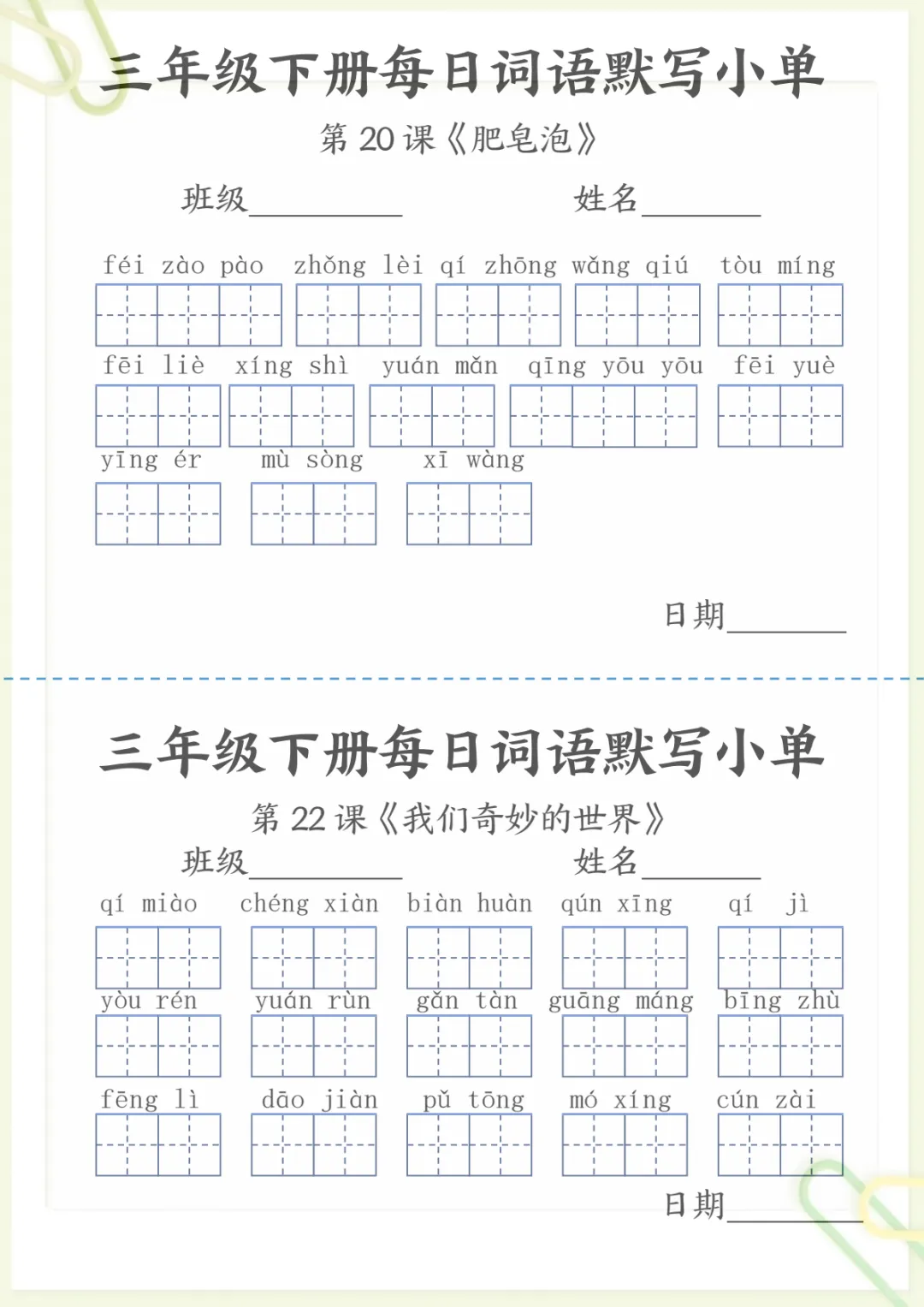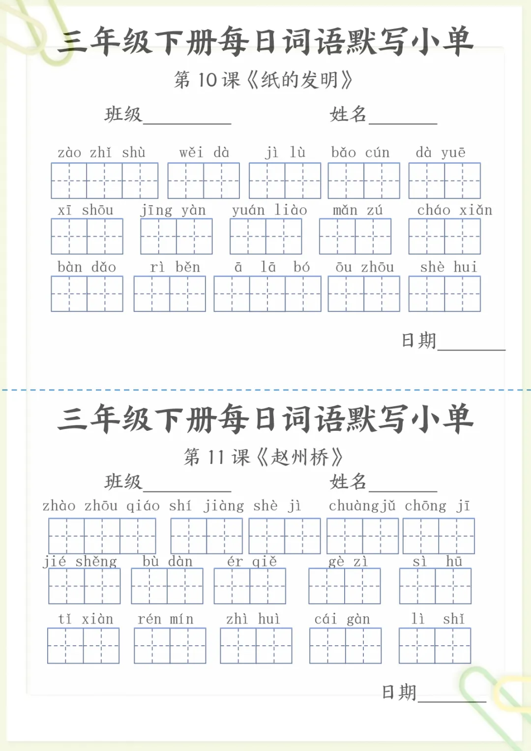 【《词语表》每日默写小单】三下语文,电子版可打印 None (温馨提示:文末有完整领取方式) 免费领取完整电子版 ①:点一点右下角的“赞”和“在看”,感谢!②:在公众号对话框中回复: 5259 ③: 点击小程序领取→电子版资料