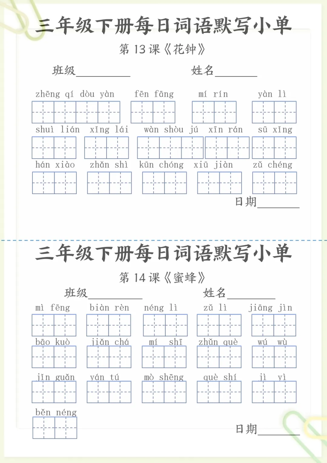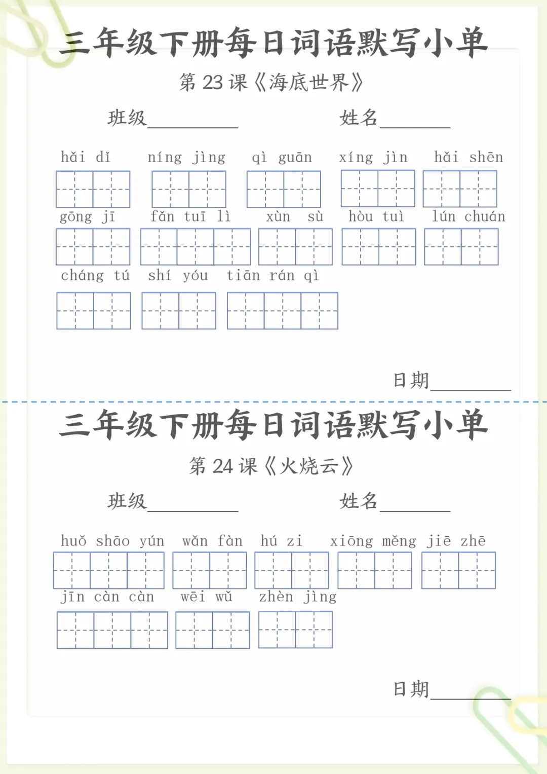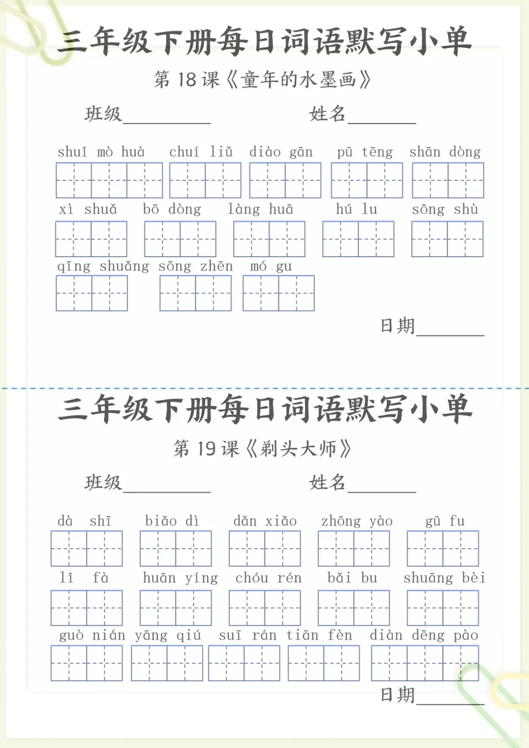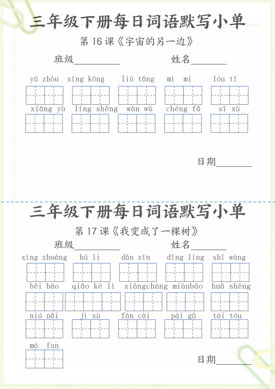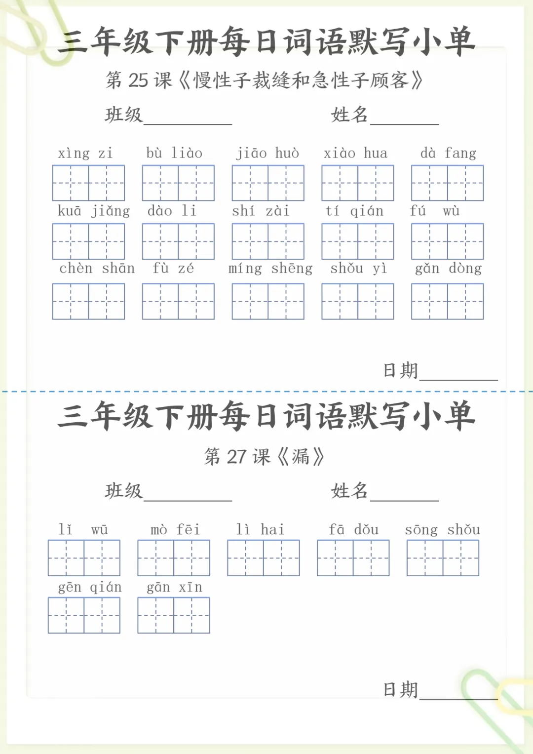 【《词语表》每日默写小单】三下语文,电子版可打印 None (温馨提示:文末有完整领取方式) 免费领取完整电子版 ①:点一点右下角的“赞”和“在看”,感谢!②:在公众号对话框中回复: 5259 ③: 点击小程序领取→电子版资料