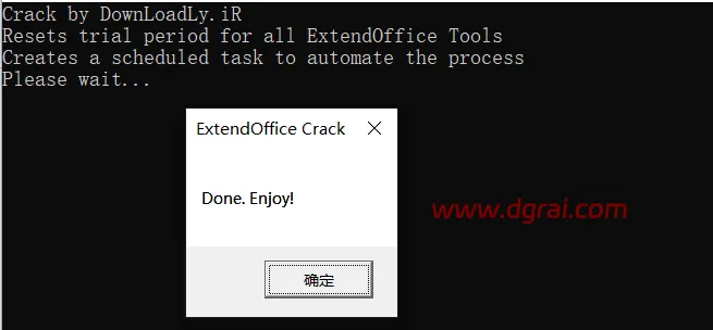 出现如下提示 激活成功,继续使用该插件的全部功能(此补丁的作用是无限次激活试用功能。试用期满之后可以再次运行“ExtendOfficeCrack.exe”文件,重置使用时间)