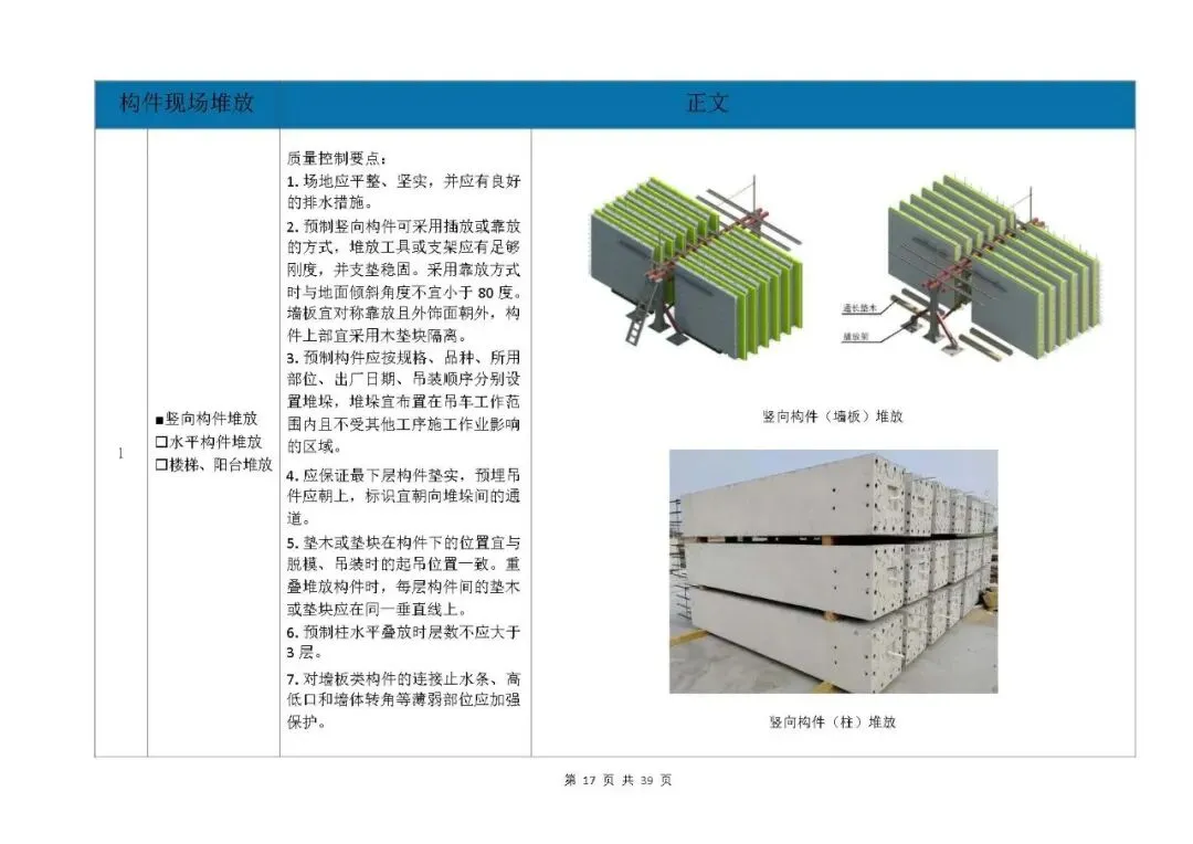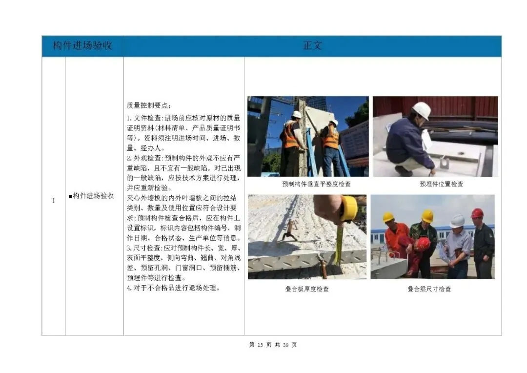 :分章节详细规定构件运输、进场验收、现场堆放、定位钢板、构件安装及节点连接的具体质量控制要点、检查方法和质量要求。