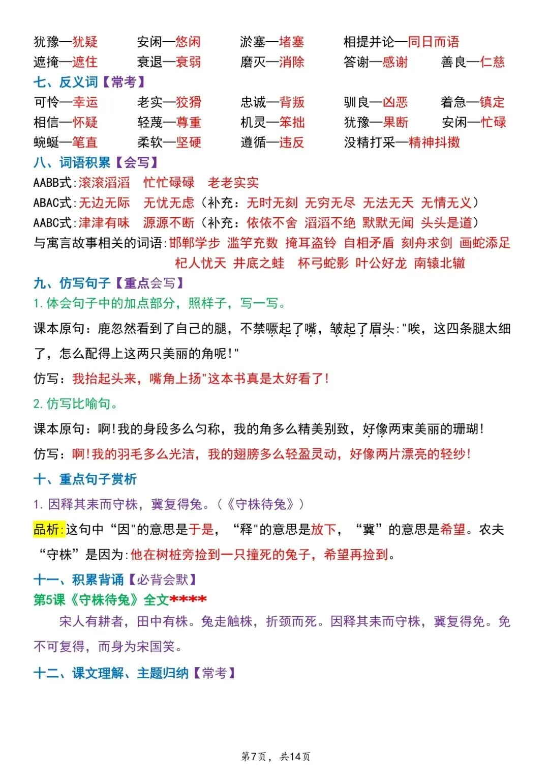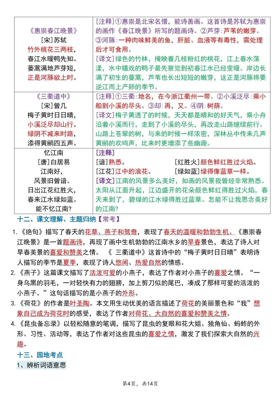 26年最新版《三年级下册语文期中复习1-4单元必考点》电子版可打印