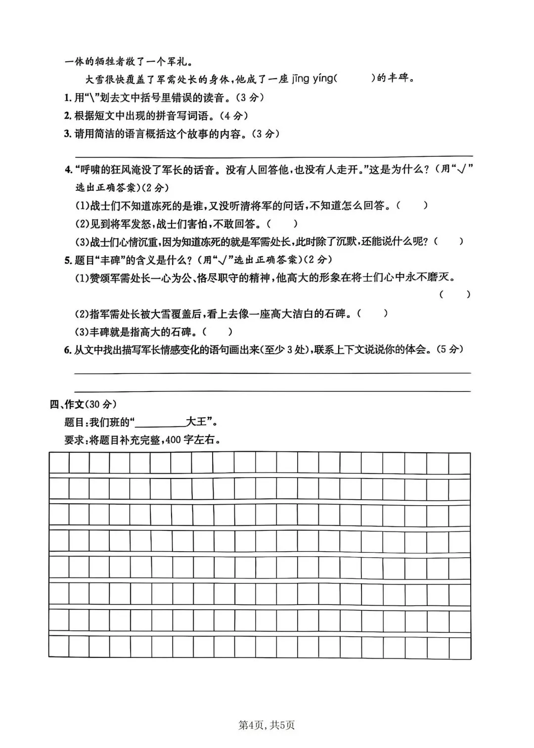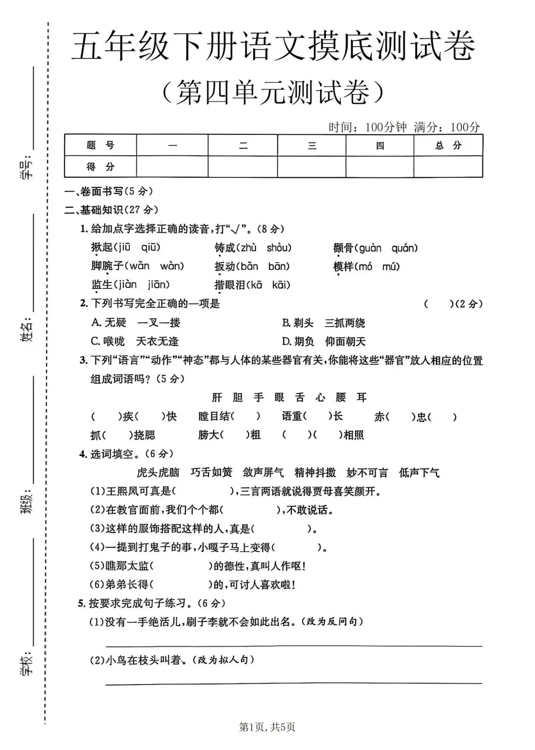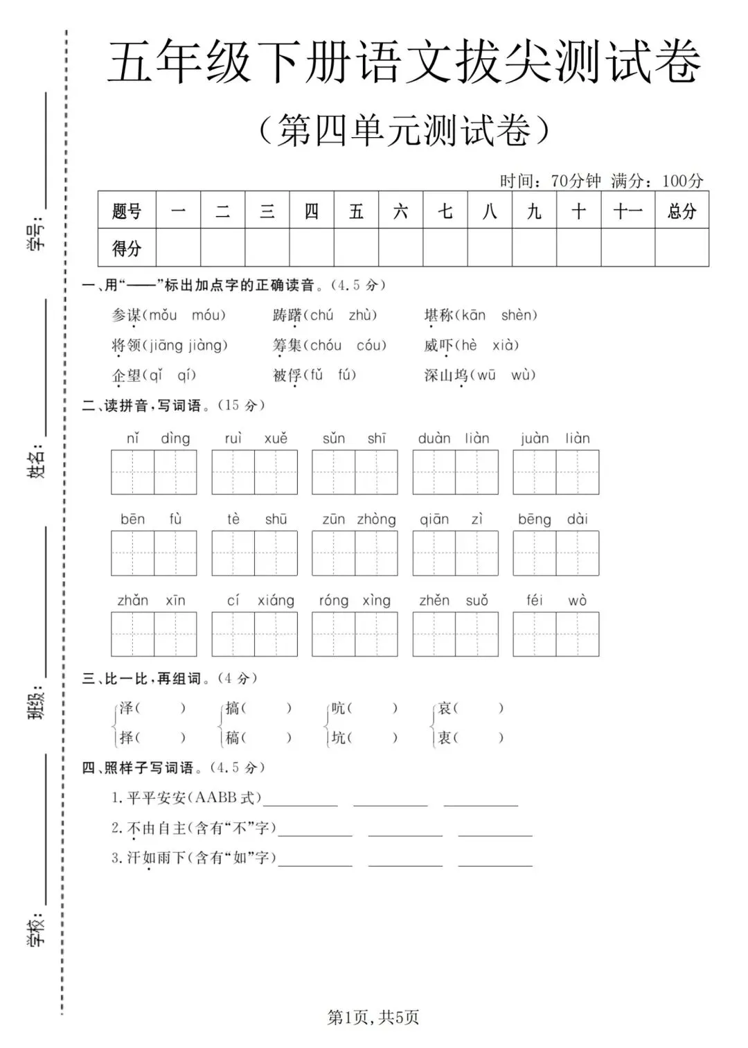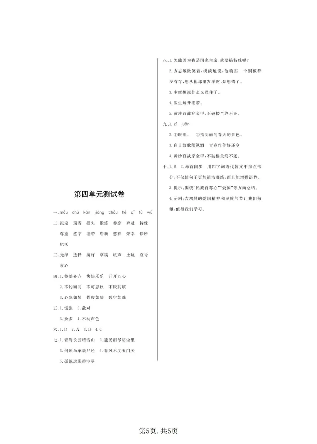 2026年春五年级下册语文人教部编版《第四单元·检测试卷》(共3套,含答案)| 完整可打印