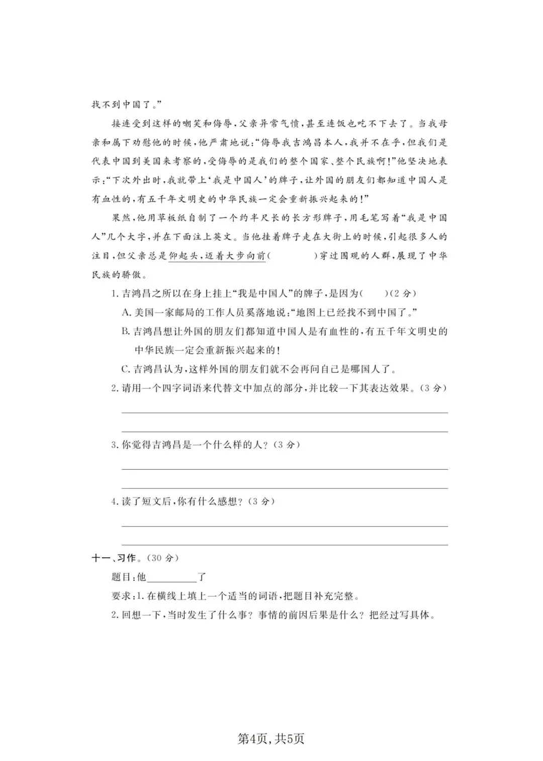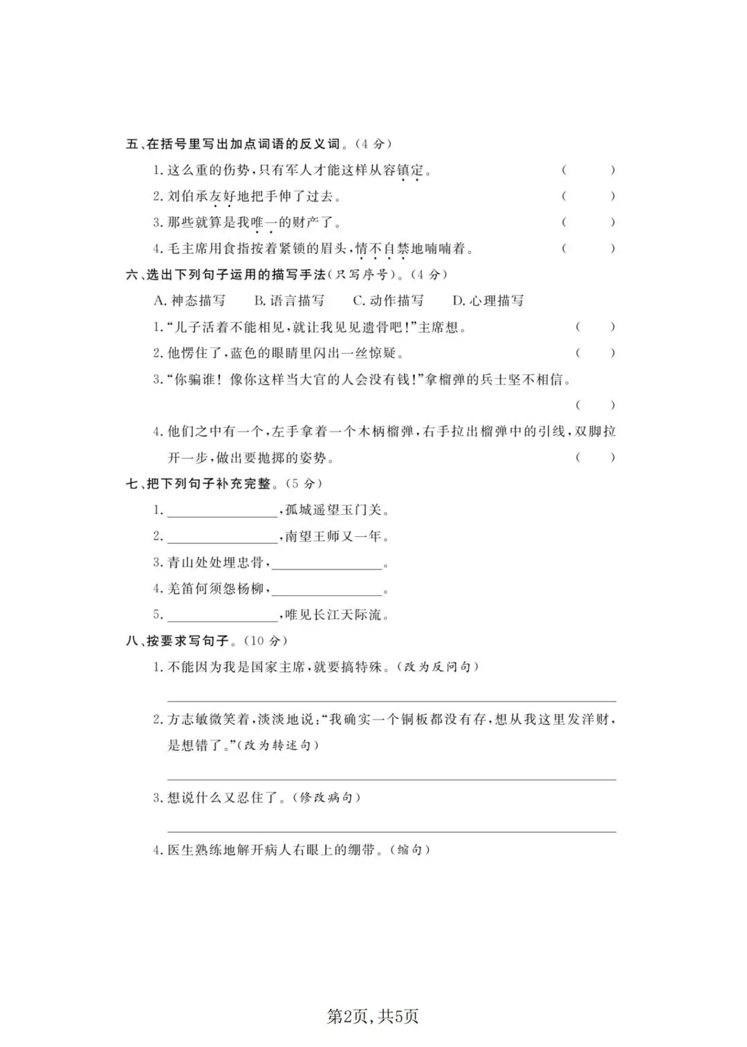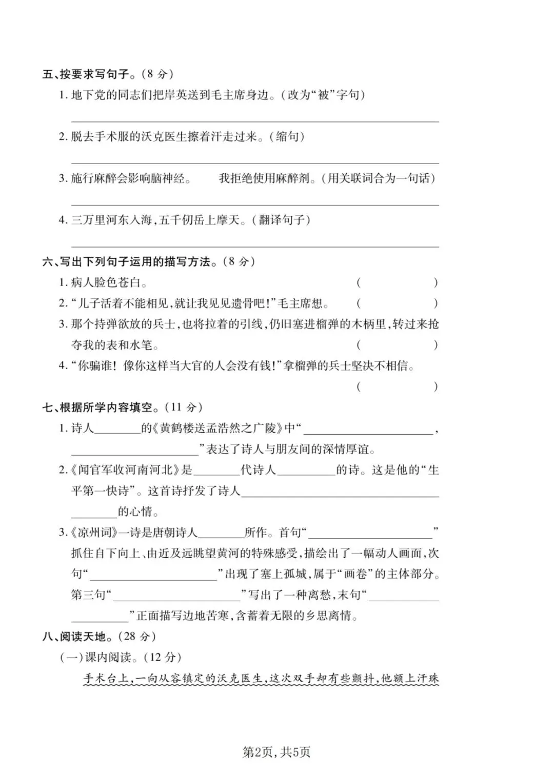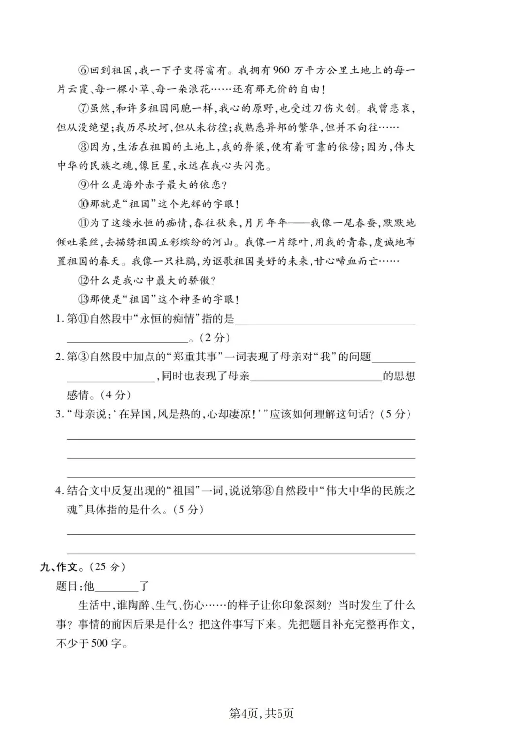 2026年春五年级下册语文人教部编版《第四单元·检测试卷》(共3套,含答案)| 完整可打印