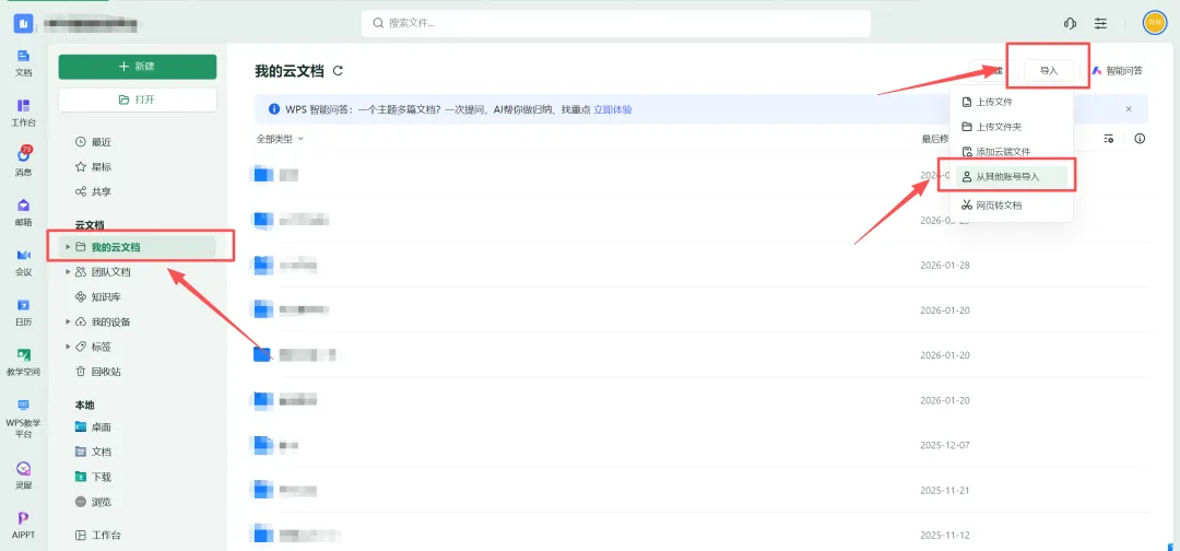 💡注意:个人文件不要上传导入到团队文档,否则团队成员将能看到文档内容。