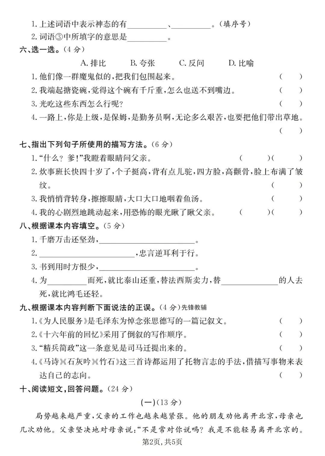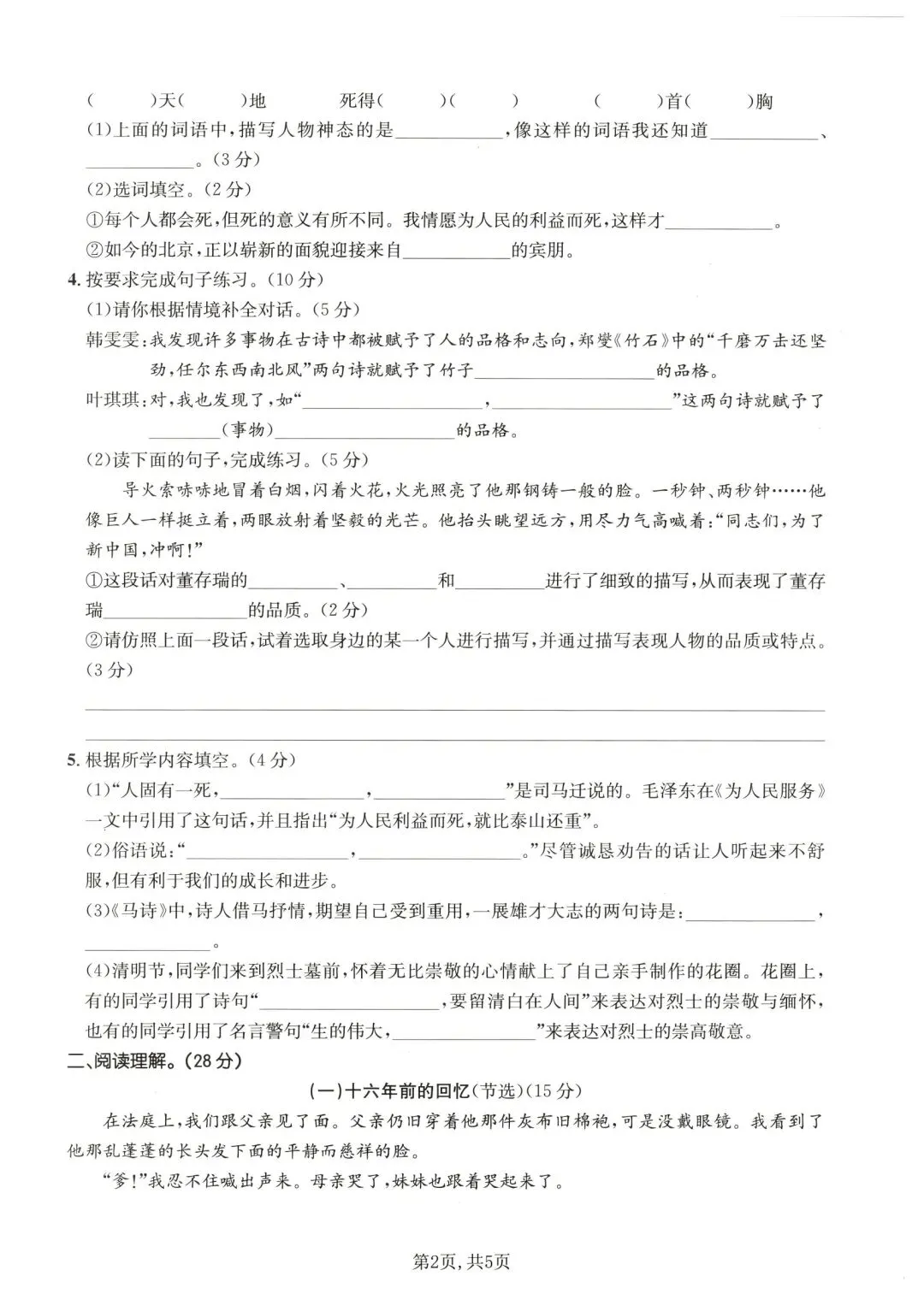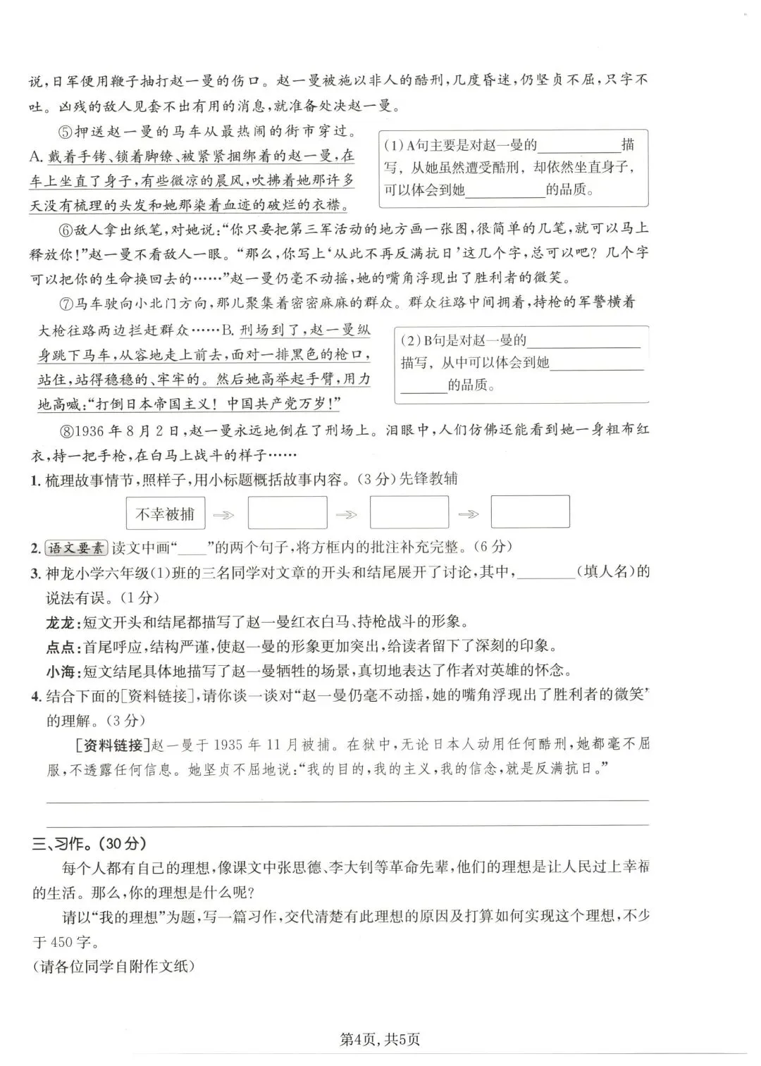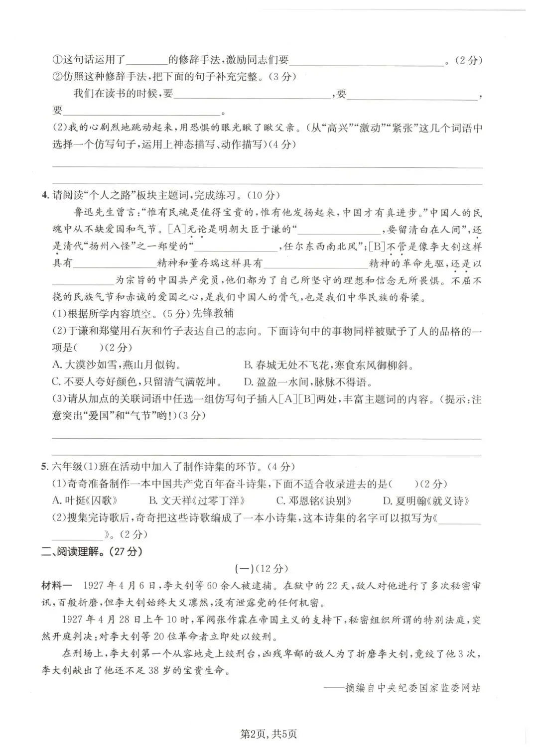 2026年春六年级下册语文人教部编版《第四单元·检测试卷》(共3套,含答案)| 完整可打印