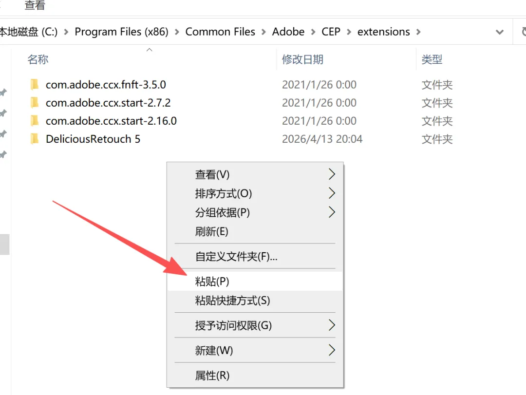 3.依次打开图示路径,在空白处右键粘贴。