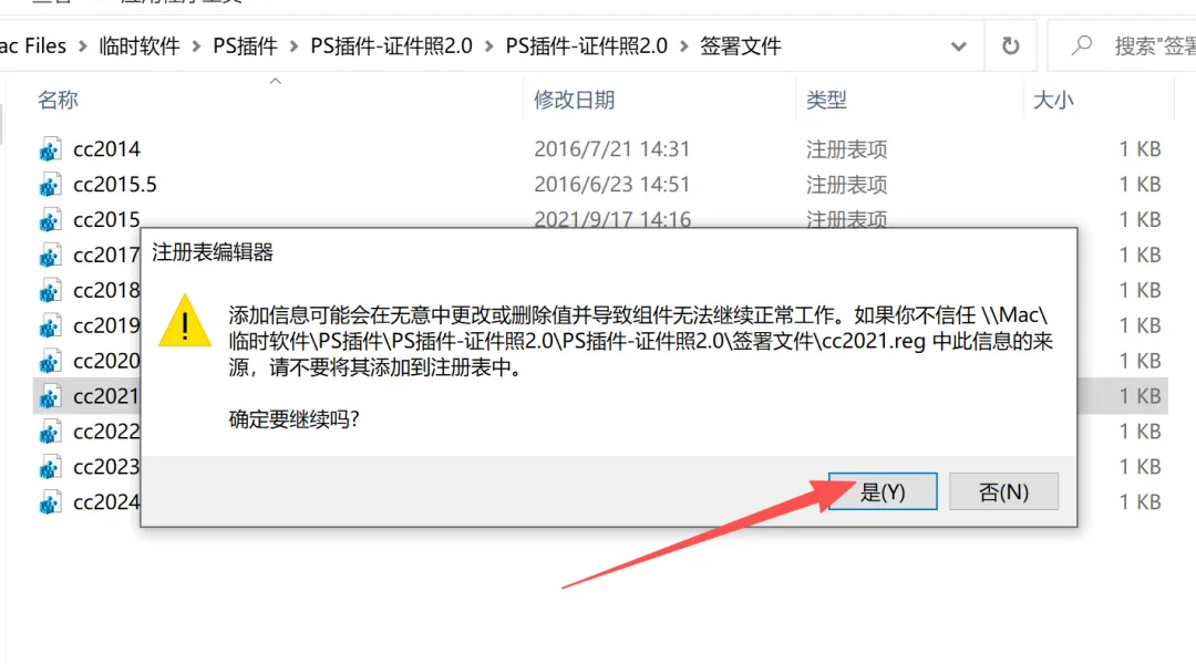 5.打开解压后的安装包,进入【签署文件】,然后根据已安装的PS版本,双击打开对应版本,然后选择是。