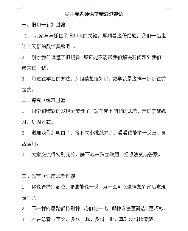 吴正宪老师和窦桂梅老师的课堂精彩过渡语,高清电子版,可下载打印!