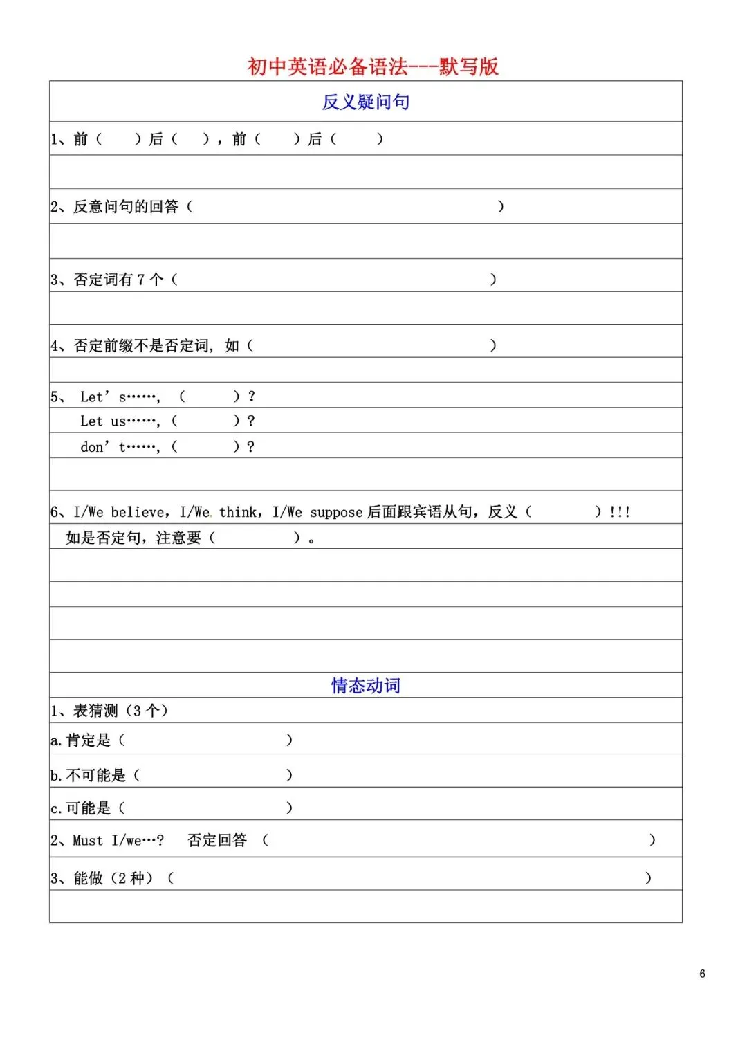 初中英语语法大全汇总丨背诵默写电子版PDF