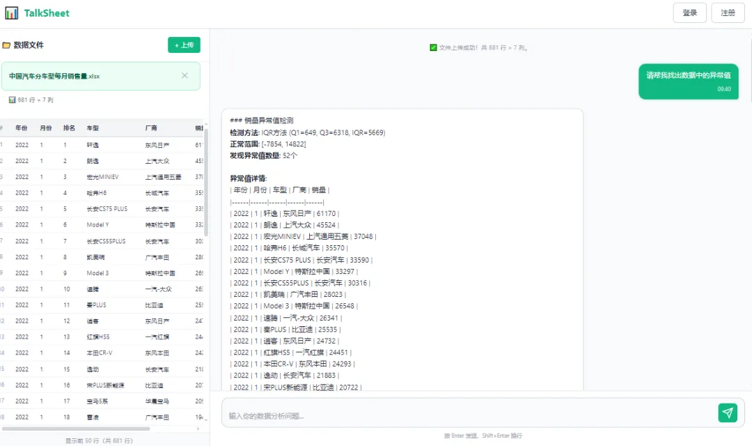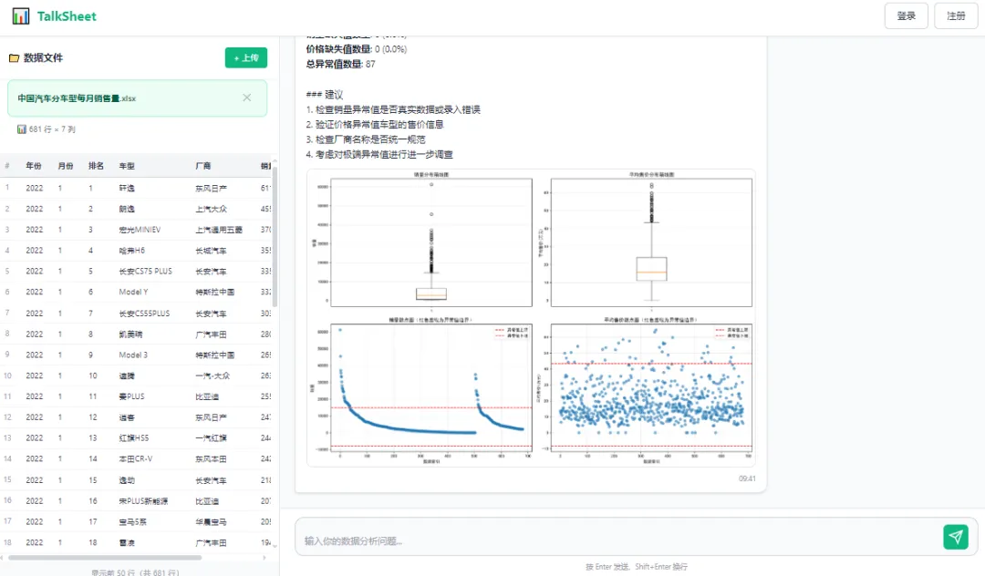 TalkSheet:AI 驱动的 Excel 分析应用,聊天式操作 + 智能图表