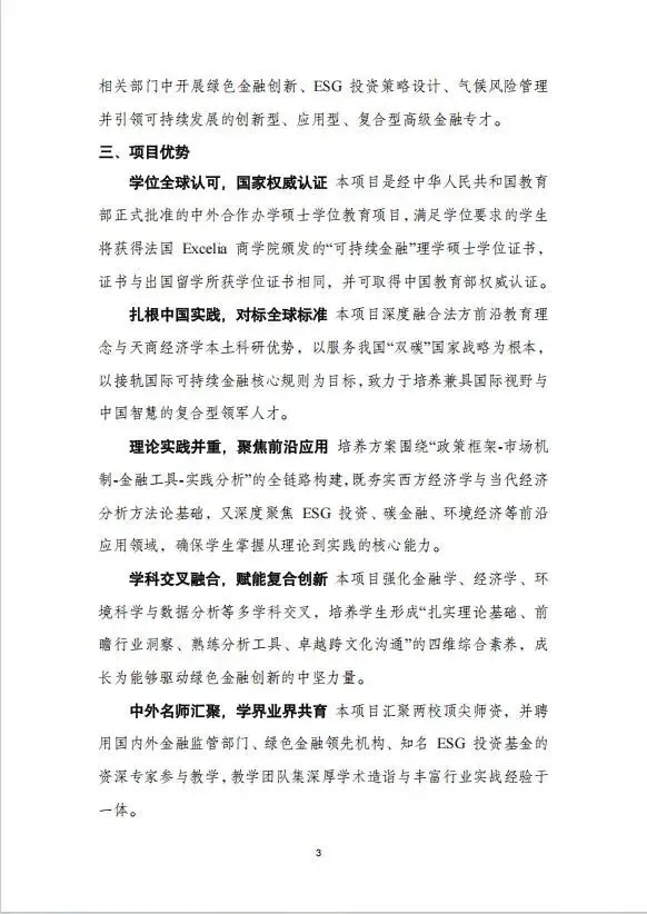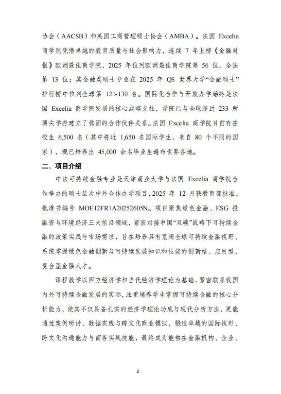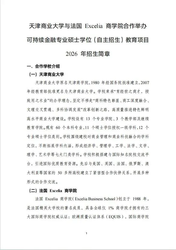【中外联合办学】天津商业大学与法国Excelia商学院可持续金融硕士学位2026年简章