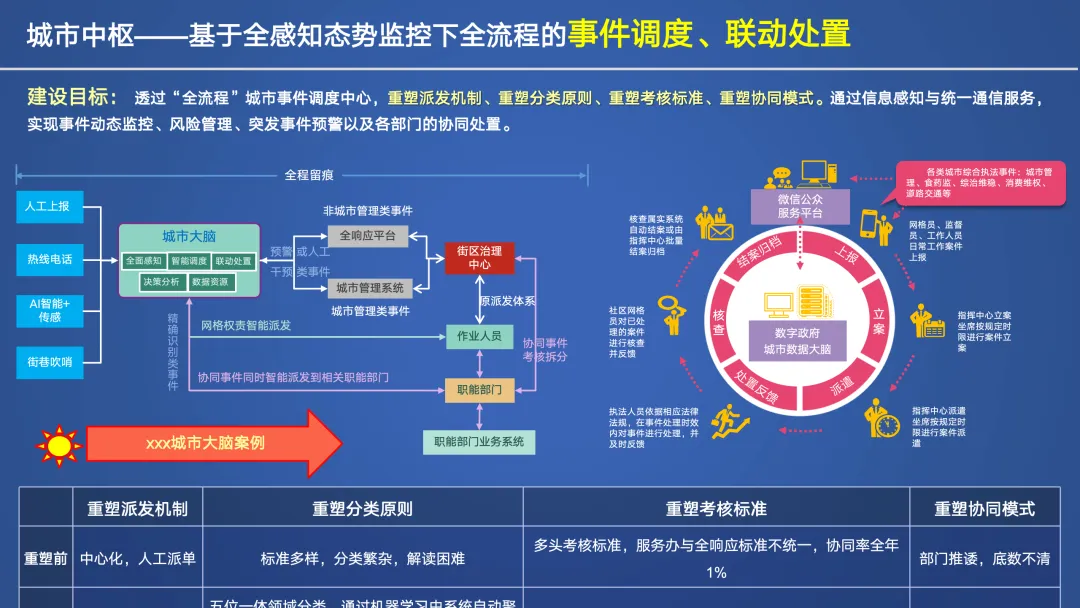 :通过视频监控、传感器、网格员上报、热线电话、网络舆情等多渠道,实现城市事件的全时空感知和动态监测。 - 全智能能力