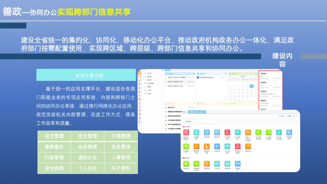 通过政务协同办公平台和”互联网+监管”系统,实现跨部门、跨层级的业务协同和数据共享。领导驾驶舱和数据分析工具为科学决策提供支撑,政务工作从”经验决策”转向”数据决策”。