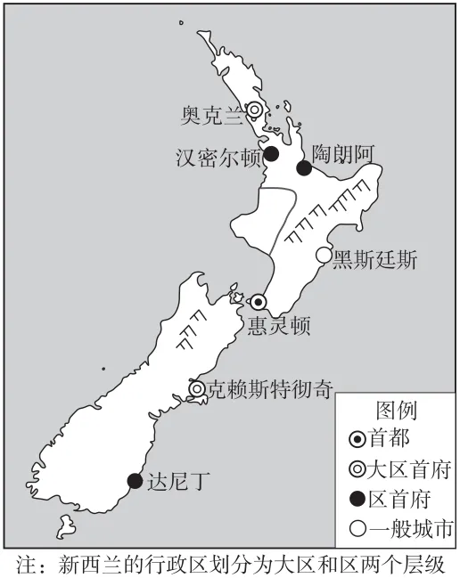 新西兰航空以奥克兰为中心,航线覆盖大洋洲、亚洲、美洲和欧洲,致力于区域航空枢纽的建设,但国内外竞争压力大,在夹缝中谋发展。下图示意新西兰部分城市分布。据此完成下面小题。