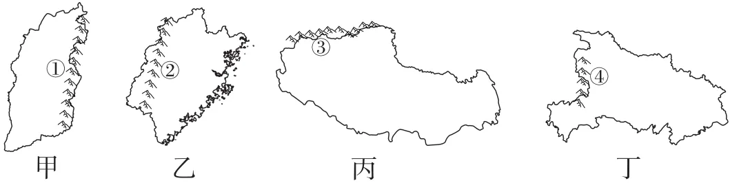 下图示意我国四个省级行政区的轮廓及相关山脉位置。据此完成下面小题。
