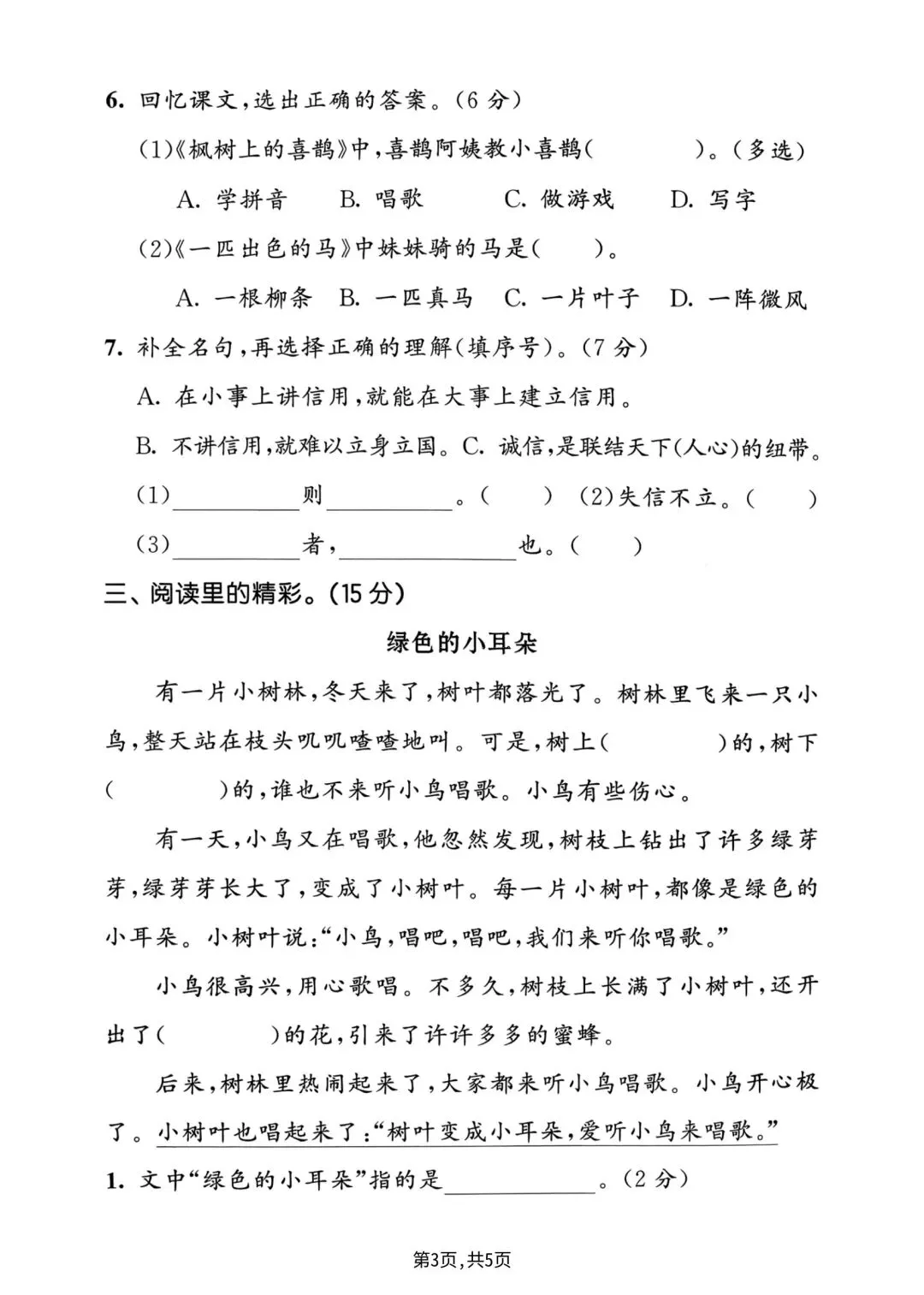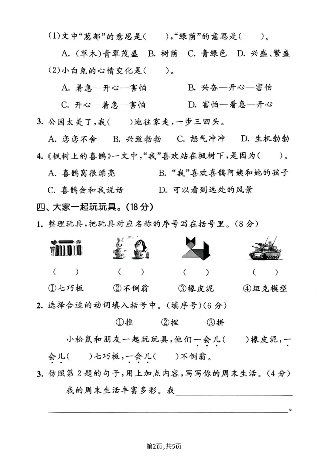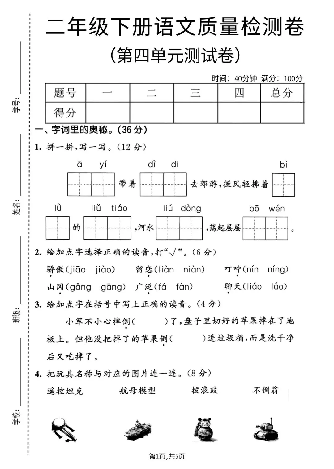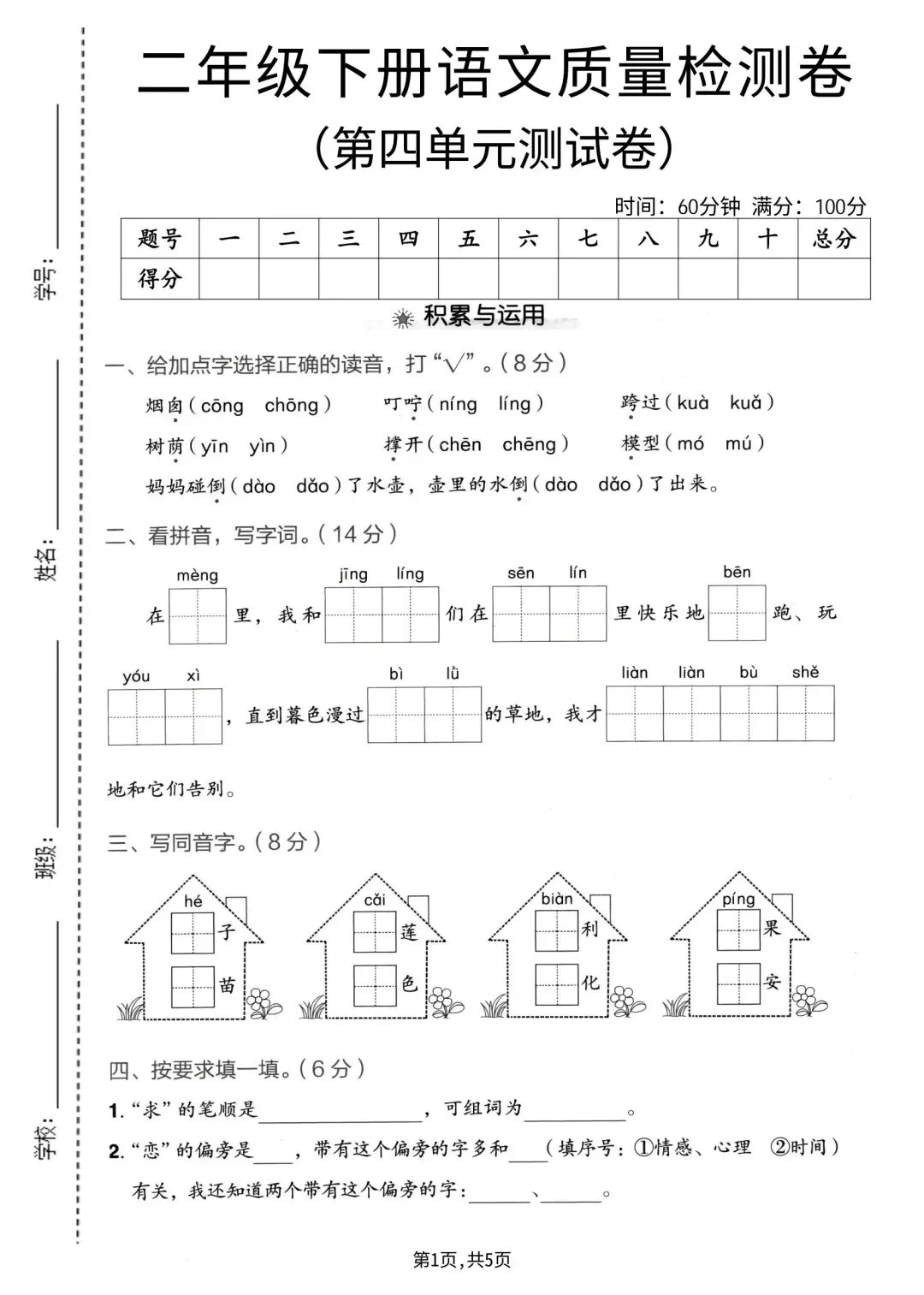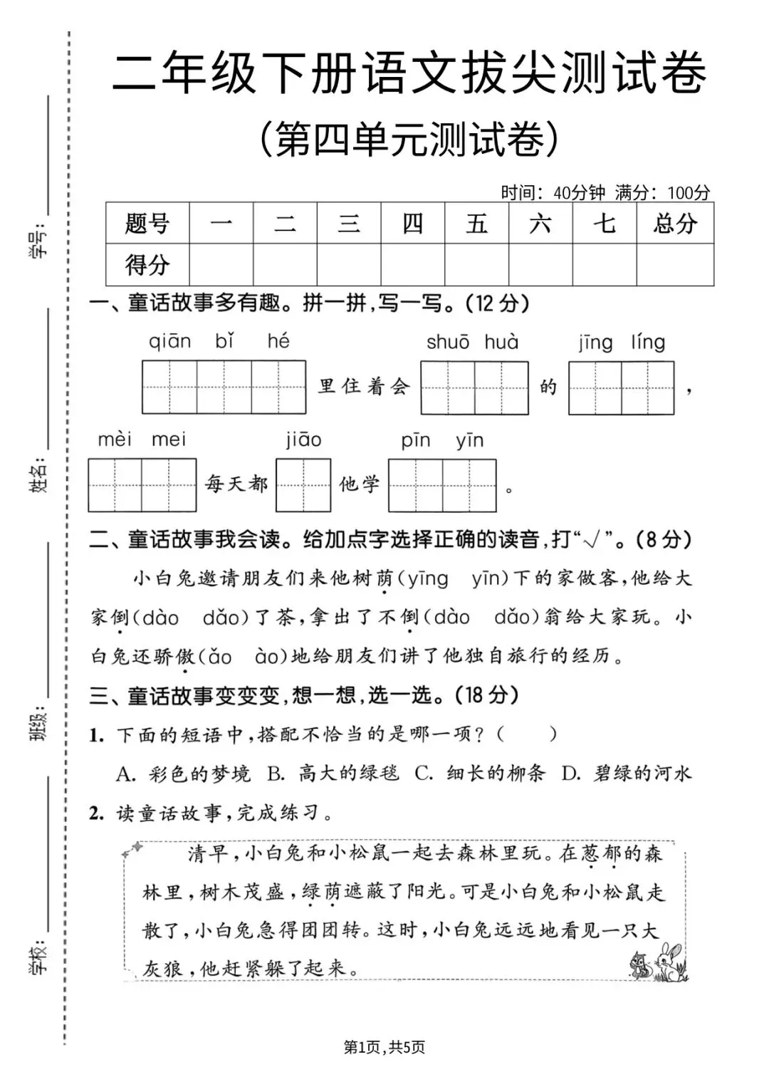2026年春二年级下册语文人教部编版《第四单元·检测试卷》(共3套,含答案)| 完整可打印