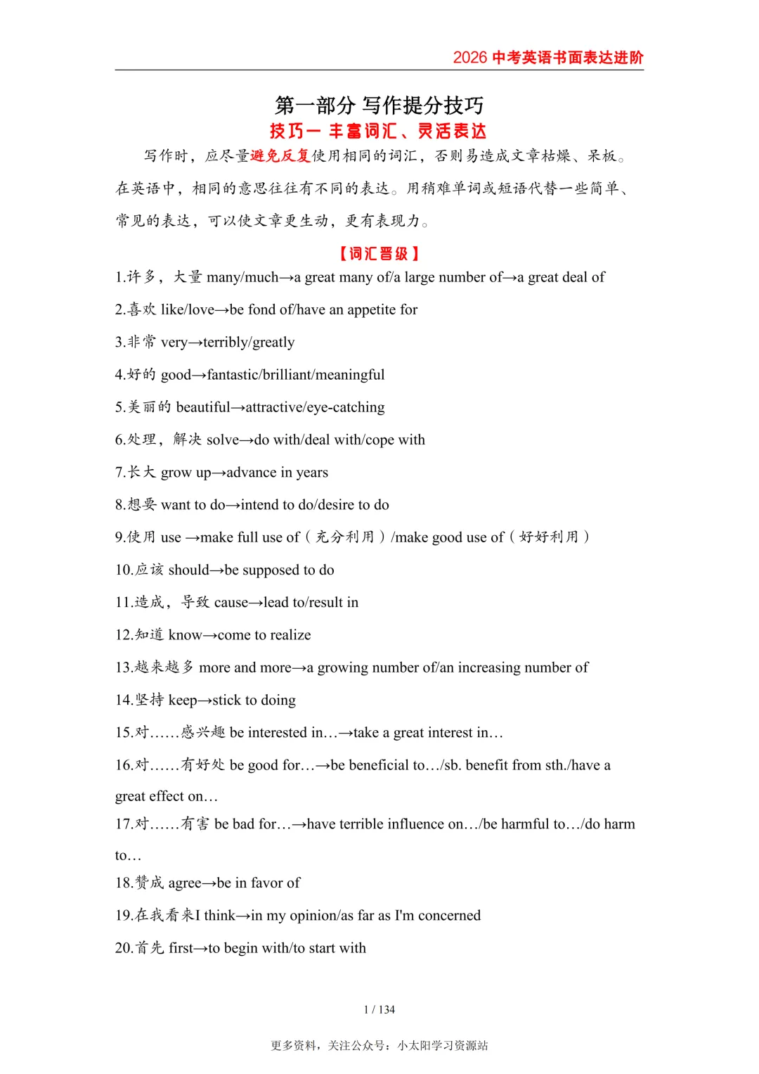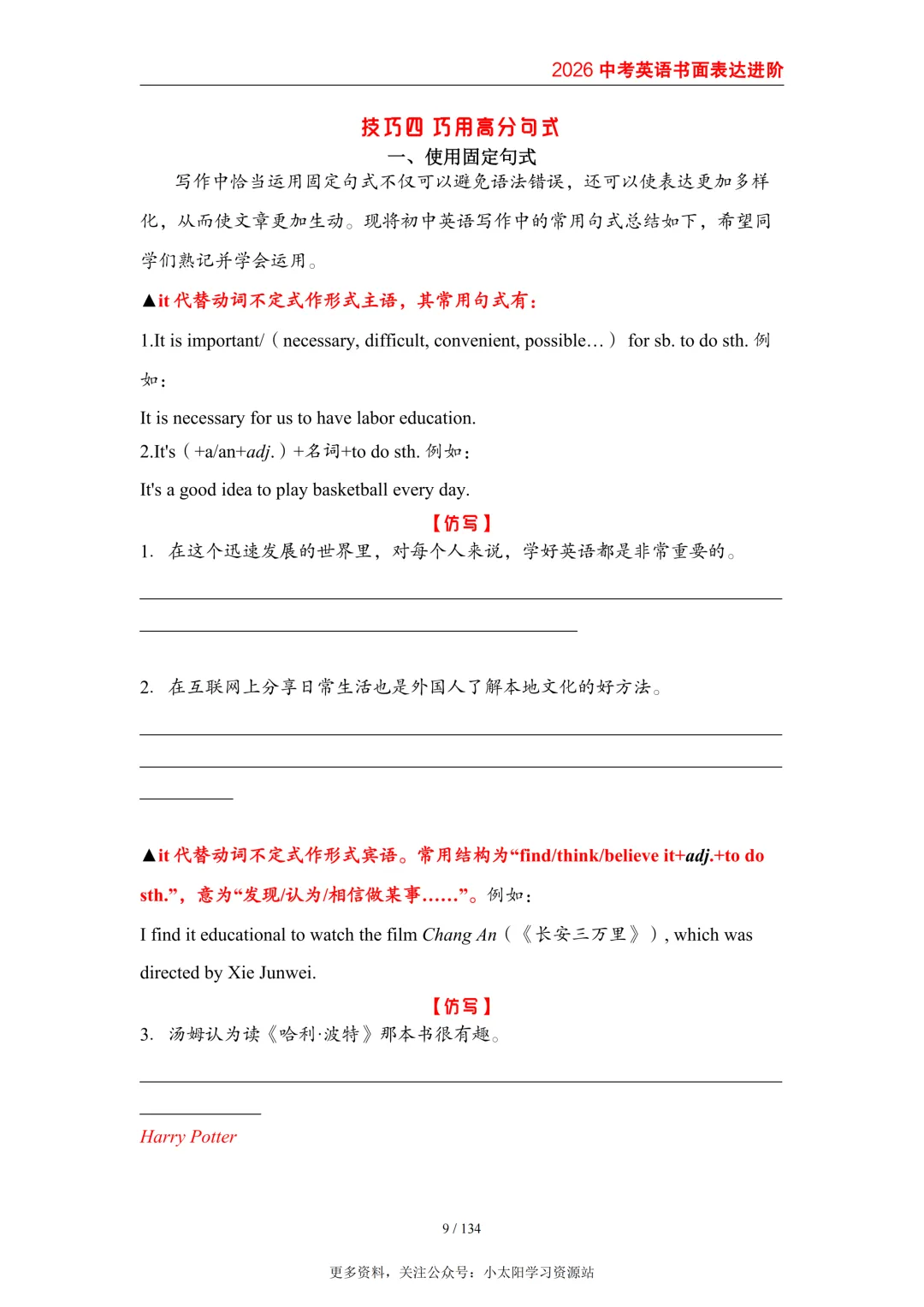 今天给大家分享的是2026版初中【中考英语作文写作进阶】附答案-208页电子版可下载打印,下载方式详见页面底部。更多学习资料获取请持续关注【星星资料库】公众号。