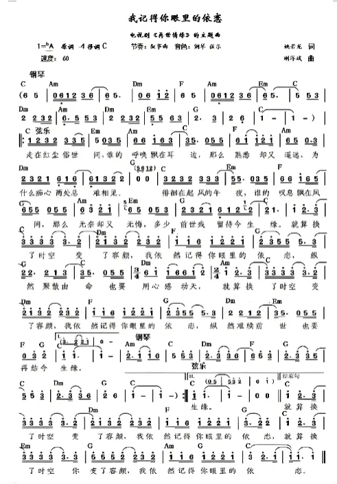 《我记得你眼里的依恋》原唱完整版免费下载,附歌词简谱flac无损mp3铃声