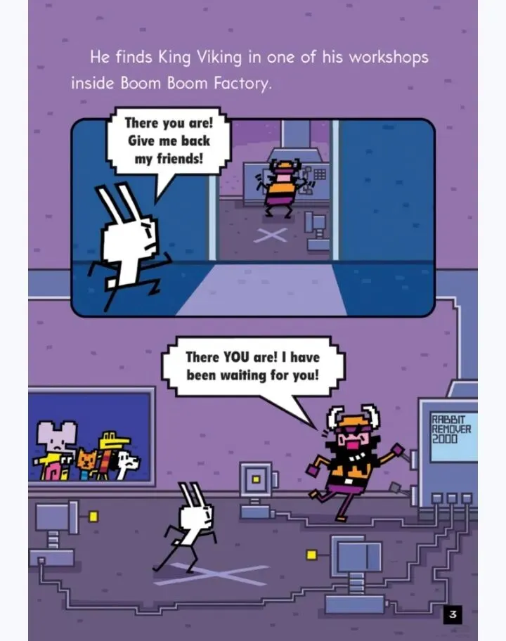《方块兔》故事由一个玩游戏的小男孩桑尼(Sunny)按下游戏开始键展开,跟随桑尼进入超级方块兔所在的游戏世界,用智慧和勇敢闯关,最终取得游戏胜利。