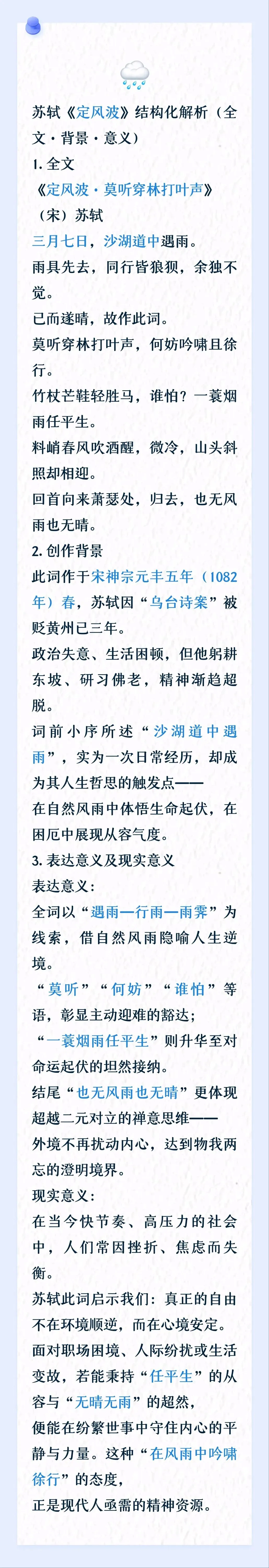 苏轼《定风波》结构化解析(全文·背景·意义)