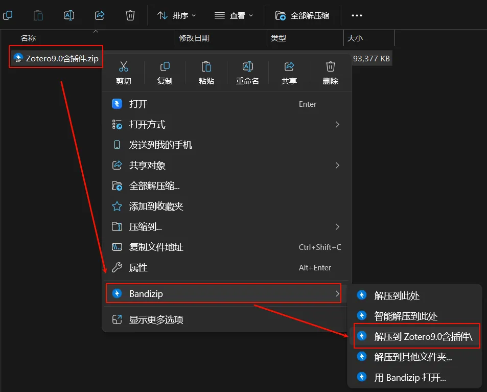1.选中下载好的安装包,鼠标右键解压到“Zotero9.0含插件”文件夹